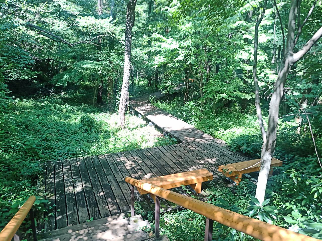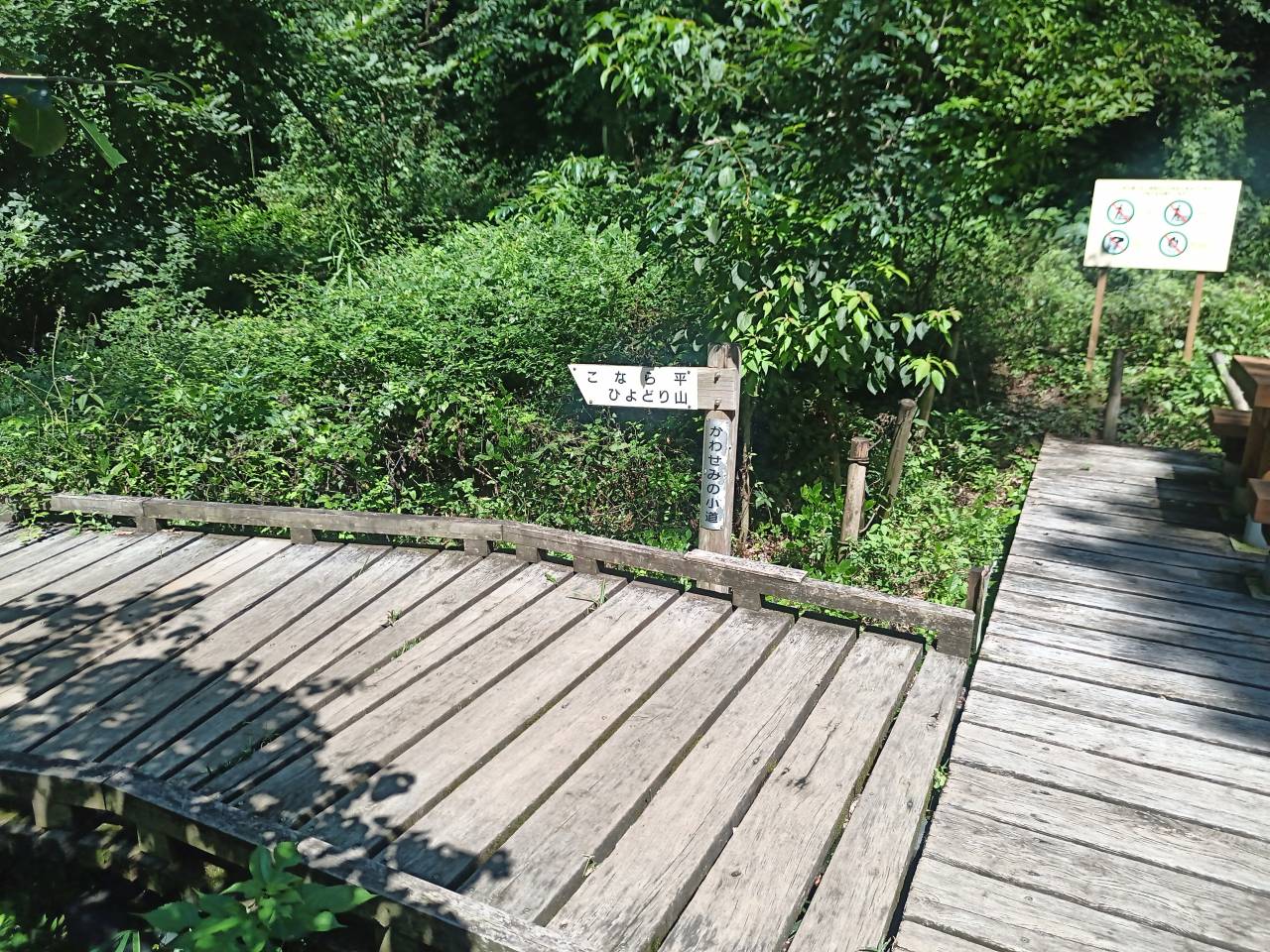 下り切ると、戦場ヶ原っぽい、上高地っぽい板張りの遊歩道が現れます。