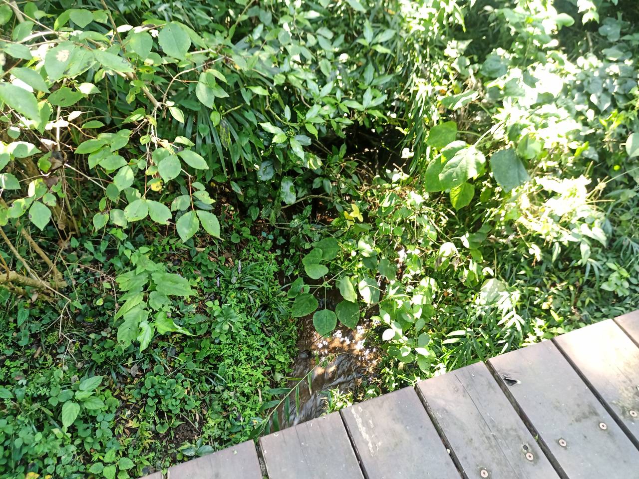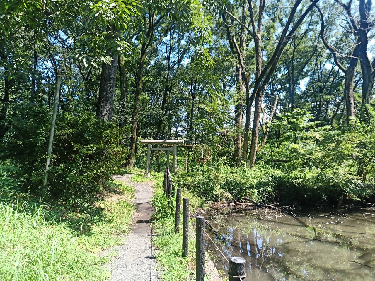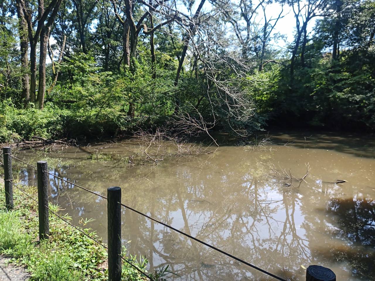 ずっと周りには水、小川が流れています。猛暑ですが、この窪地だけは涼しげです。納涼散歩には最適。