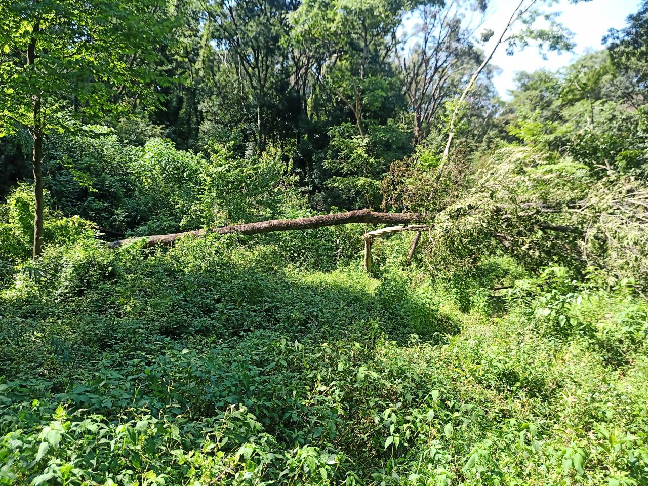 思いっきりバリバリ、何本も倒れてるじゃん。巻き込まれて倒れた樹もあるようです。