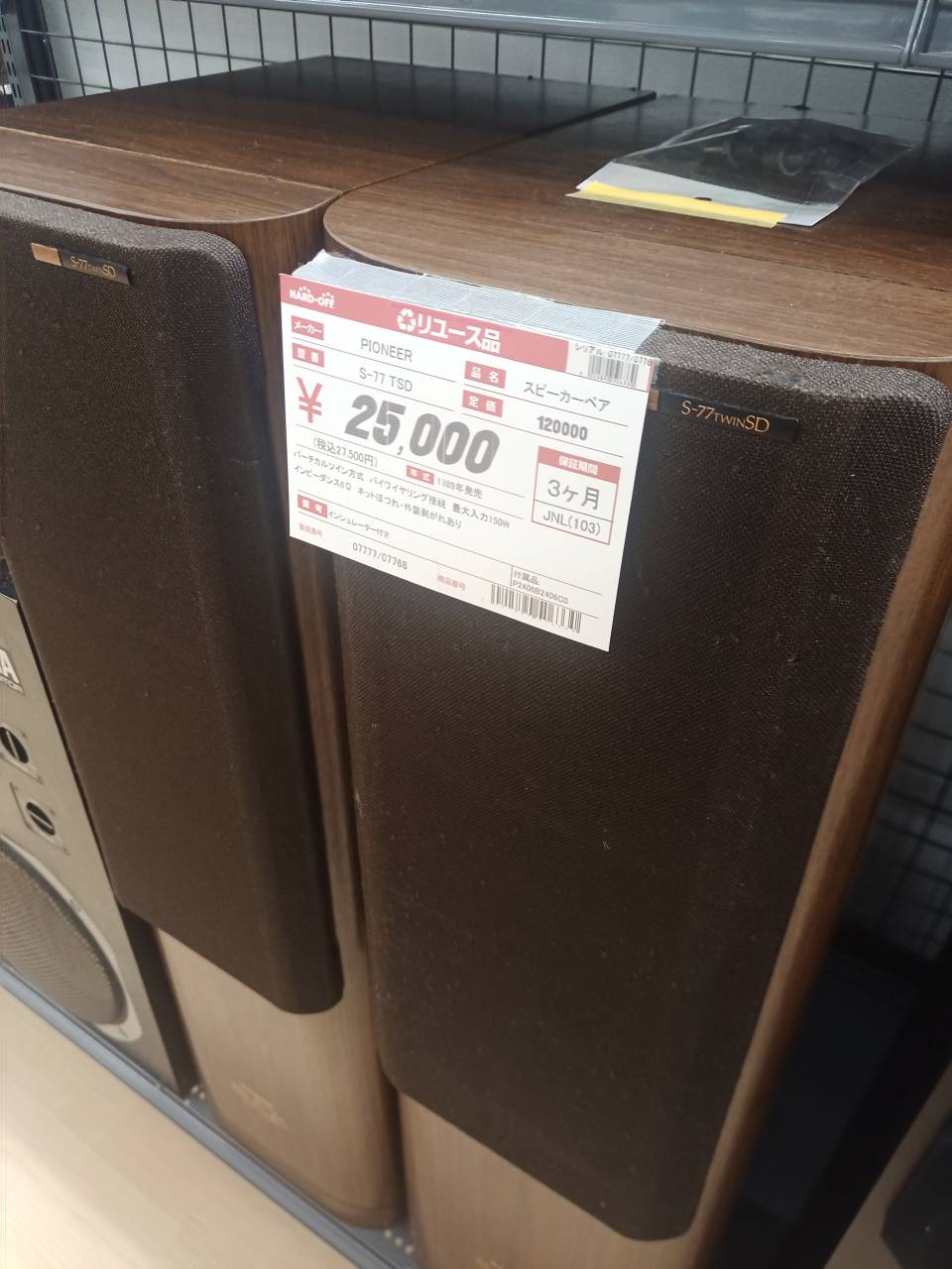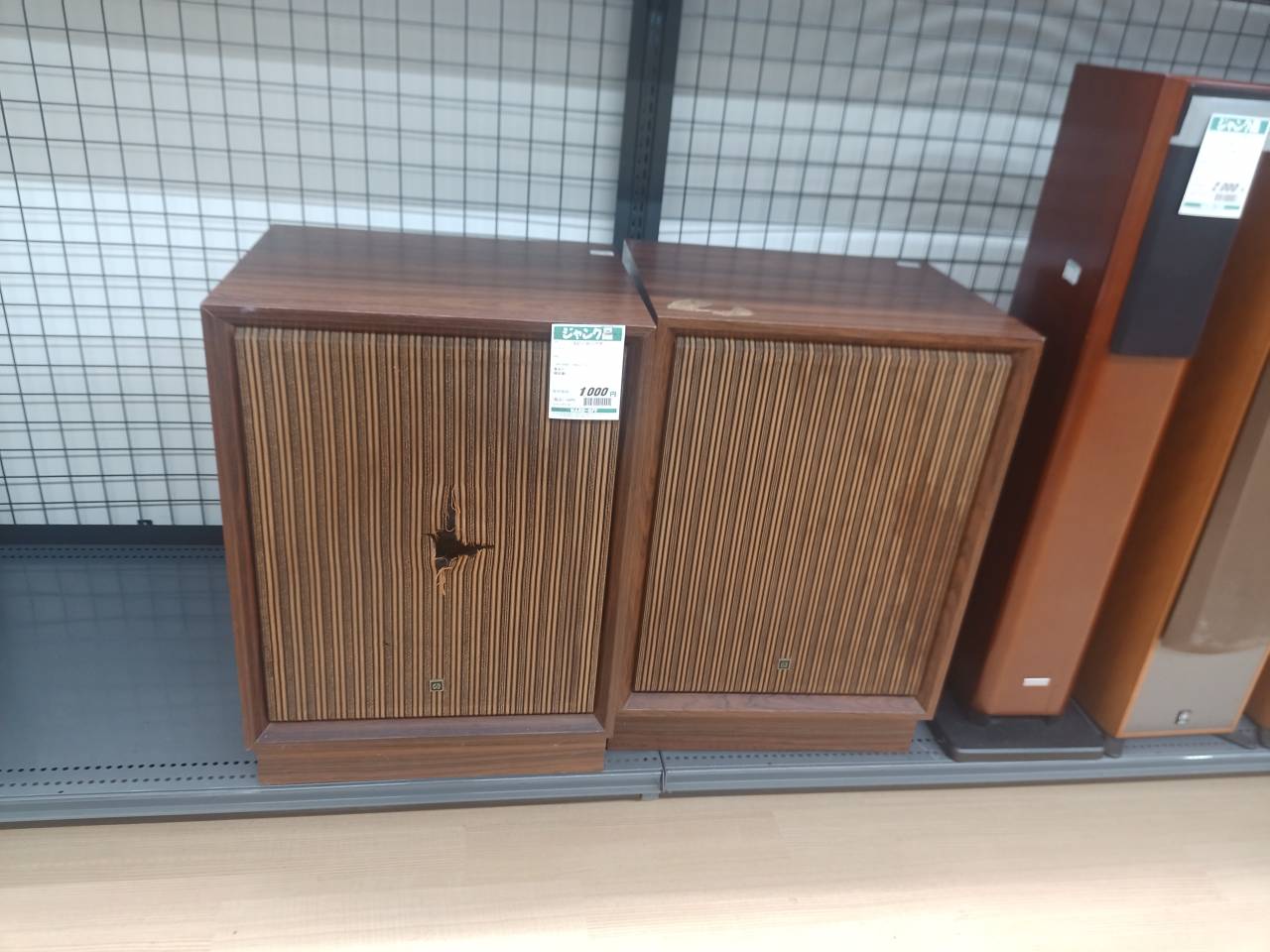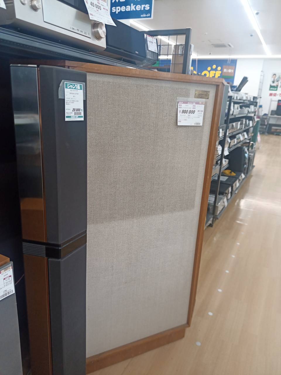 1,000円のスピーカー。ロゴバッジを見ればどうやらYAMAHAらしいのですが詳細不明。大昔のコンソールか何かに付随していたものなのか?フィックストサラウンドのオールドなドライバーがちらっと見えました。こんなに立派な箱が千円。かなり惹かれましたが。でも、デカくて重くて臭くて処分に困る粗大ごみをわざわざ千円出して買ってきたという見方も出来ますね、止めた。