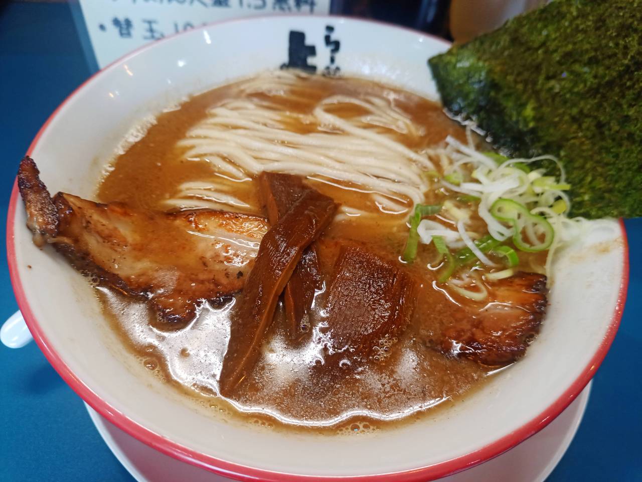 こってり、濃い味系。系統としては、同じ川越にある「頑者」と少し似ています。豚骨、魚介、魚粉、豚醤、こってり。これは鶴ヶ島にあった頃から変わりません。でも、こってり率ならこのよし丸の方が上のような気がします。そして、恐らく身体にとても悪い。常習性・中毒性の高い味で、鶴ヶ島に在る頃は「通い」していました。でも、身体のことを考えるのであれば、通わない方が良いと思います(笑