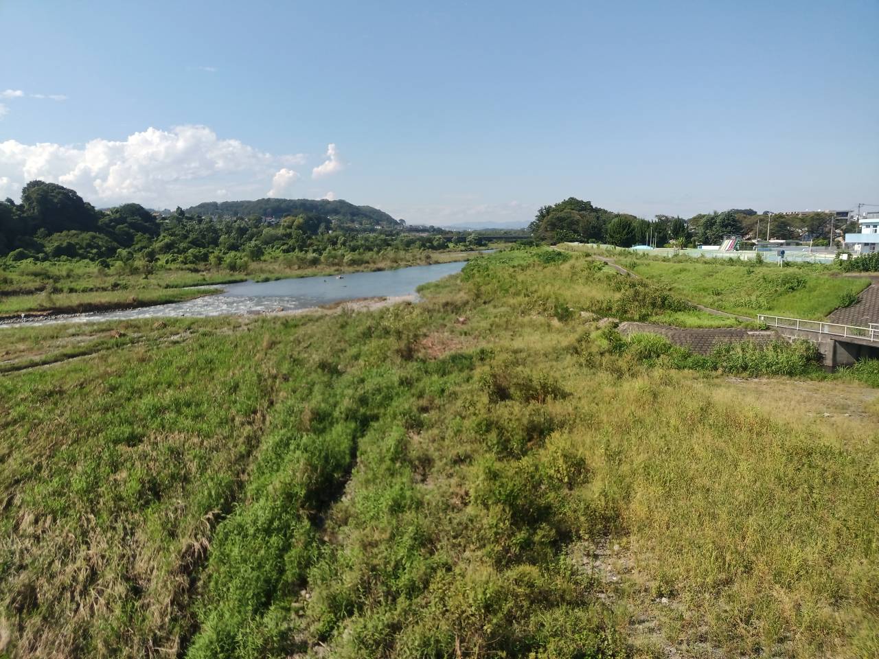 こんな感じの川辺の/住宅街のすぐ脇を走るわけですが。