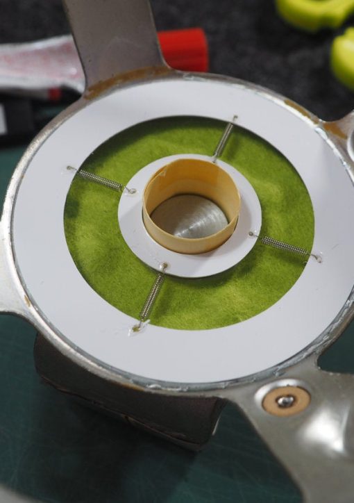 この穴から、スタッフィング材を出し入れして、調整を行うという算段です。ドライバー穴からはとても手が突っ込めません。小さすぎて。底板は、平らな床に置くことで穴を塞ぐという仕組みです。