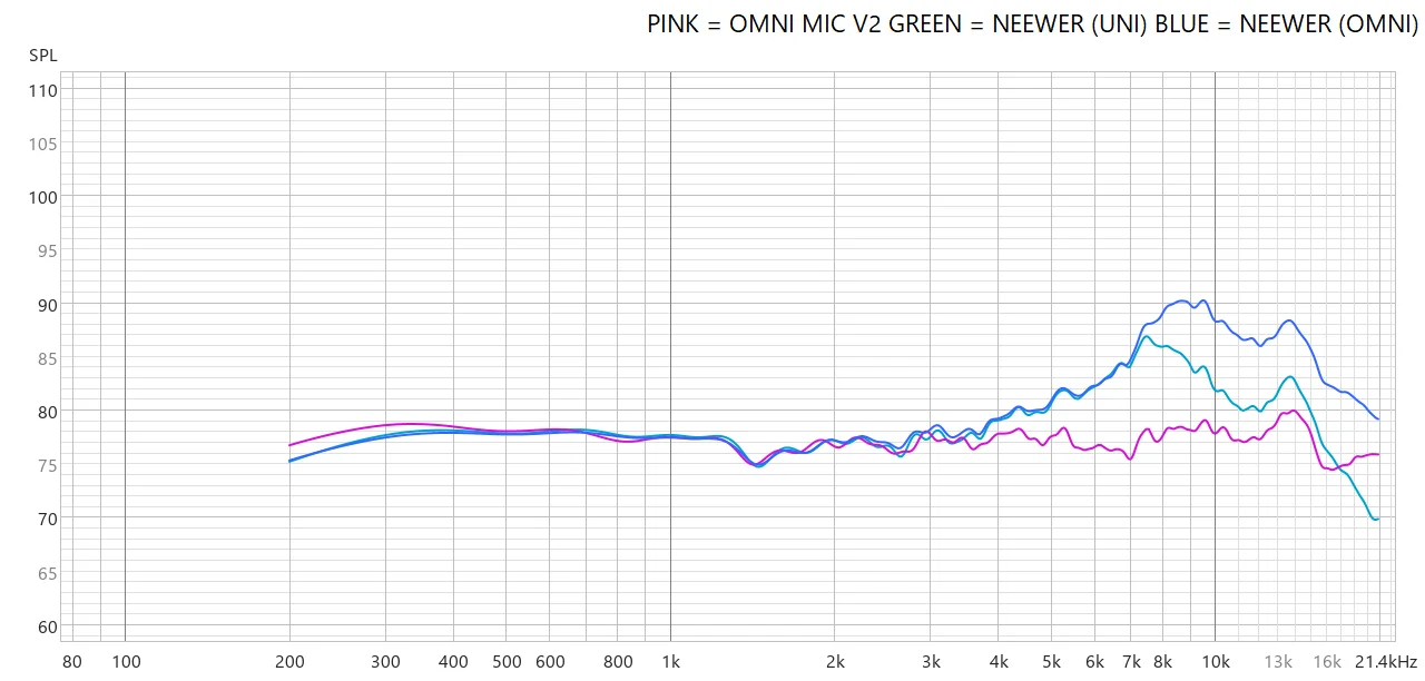 なんでOmniMicで測るかっつーと、これをリファレンスとして、これとの差分を採ることで、NEEWERマイクの特性を丸裸にしようという作戦です。