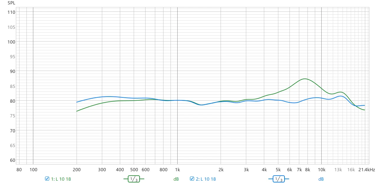 ここからはお里自慢です。拙宅のAlphaは、マイクロフォンの裸特性(f特形状)があからさまになってしまう位、ドフラットで特性が良いんです。まさにモノサシに出来ます。超広帯域で超平坦なラウドスピーカー+平坦な事が担保されている較正テーブル付きマイクロフォン。この2つが揃うことにより、他の系のマズさも差分検証が可能となります。