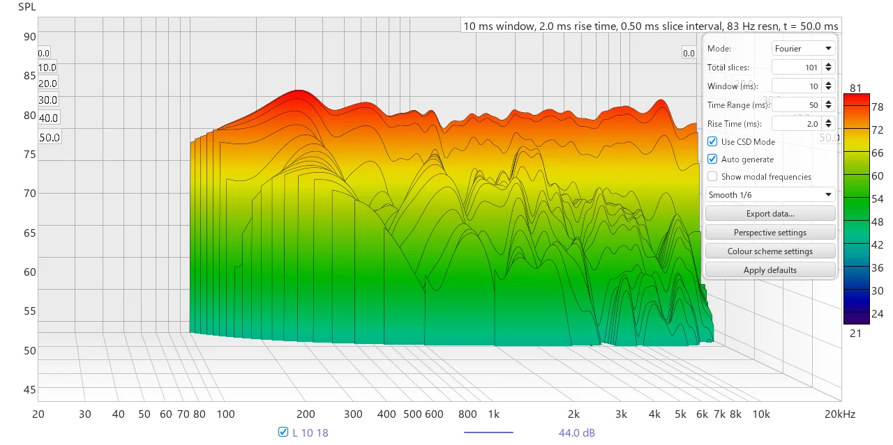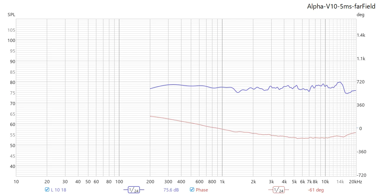 Alpha、FarField。5msなので200Hz止まり。スムージングは1/24th/Oct.です。