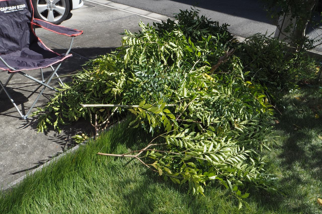 剪定そのものはいいんですが、これを50cm長の長さに剪断し、縛ってゴミに出す。これがとにかく大変。枯れ葉の処理も大変です。ほんと勘弁してほしいが、仕方がないので今年もやりました。