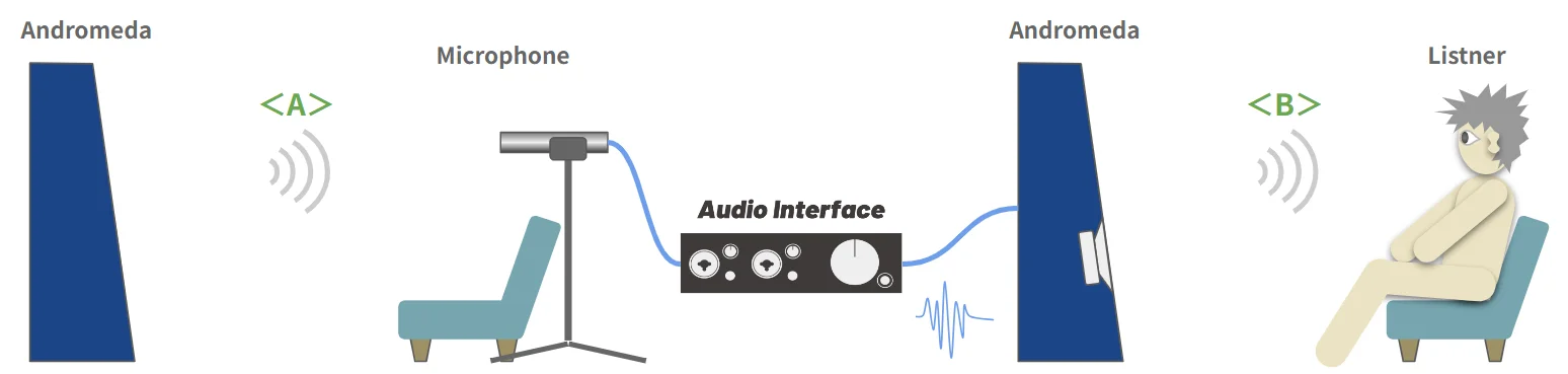 Andromedaの再生音Aを録音して、録音した音をまたAndromedaで再生音Bを出して聴く。