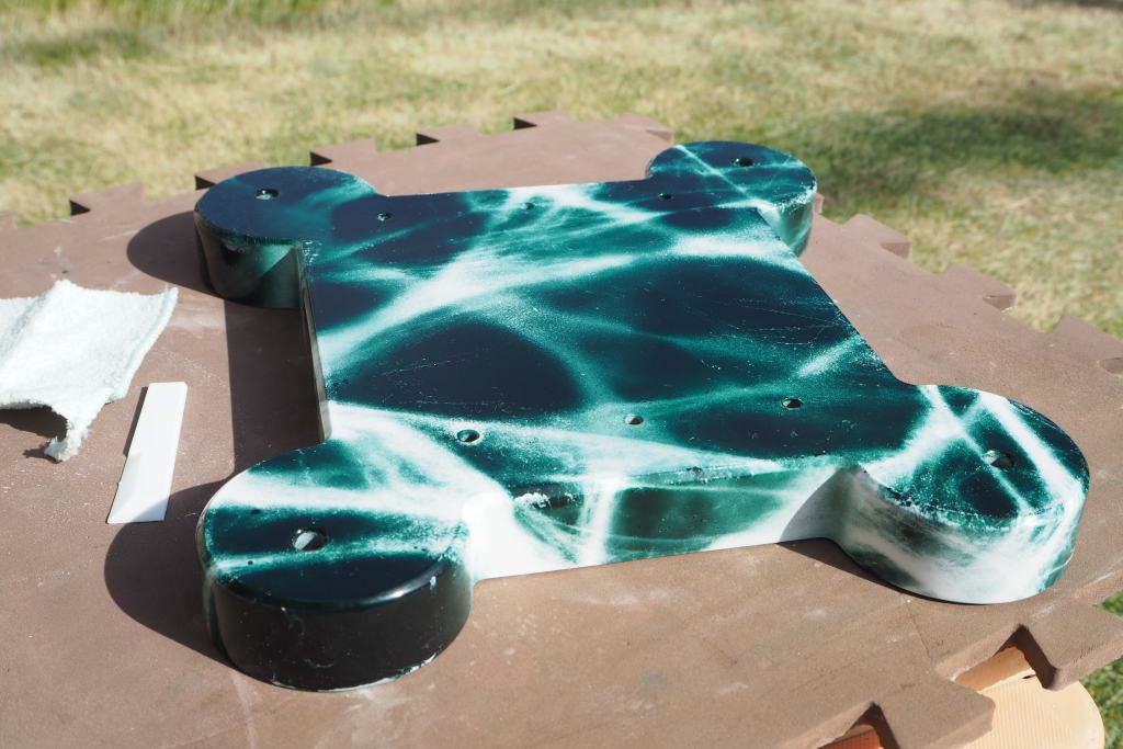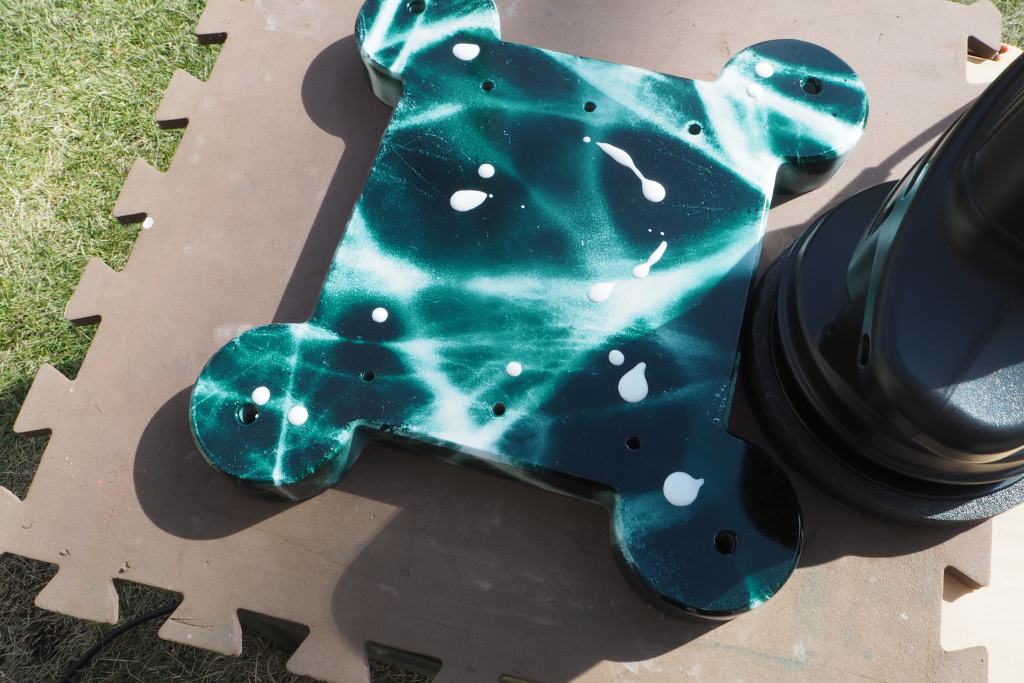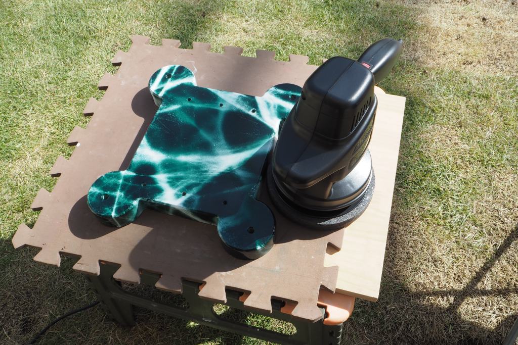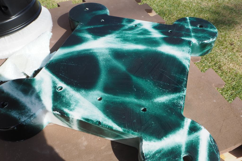 戸外にベースプレートを持ち出します。コンパウンドが飛び散って汚れますので、汚れて構わない衣服がよいでしょう。