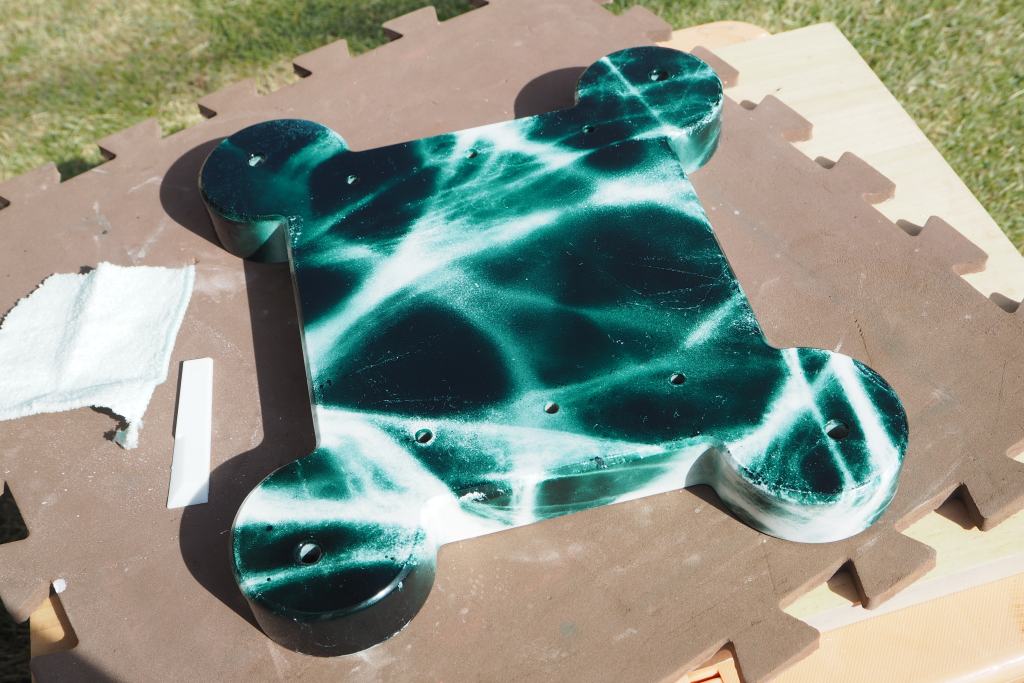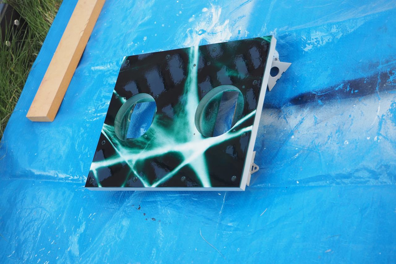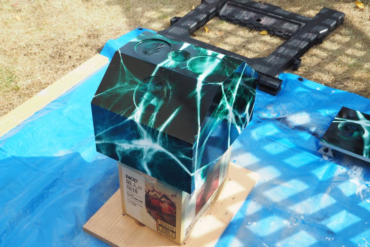 ついでにヘッドブロックの裏板も塗装しました。この後、ヘッドブロックを研磨、ワックス掛けすれば、塗装工程はすべて完了です。そうしたら、楽しく愉快な配線とドライバー取付へ移ります。