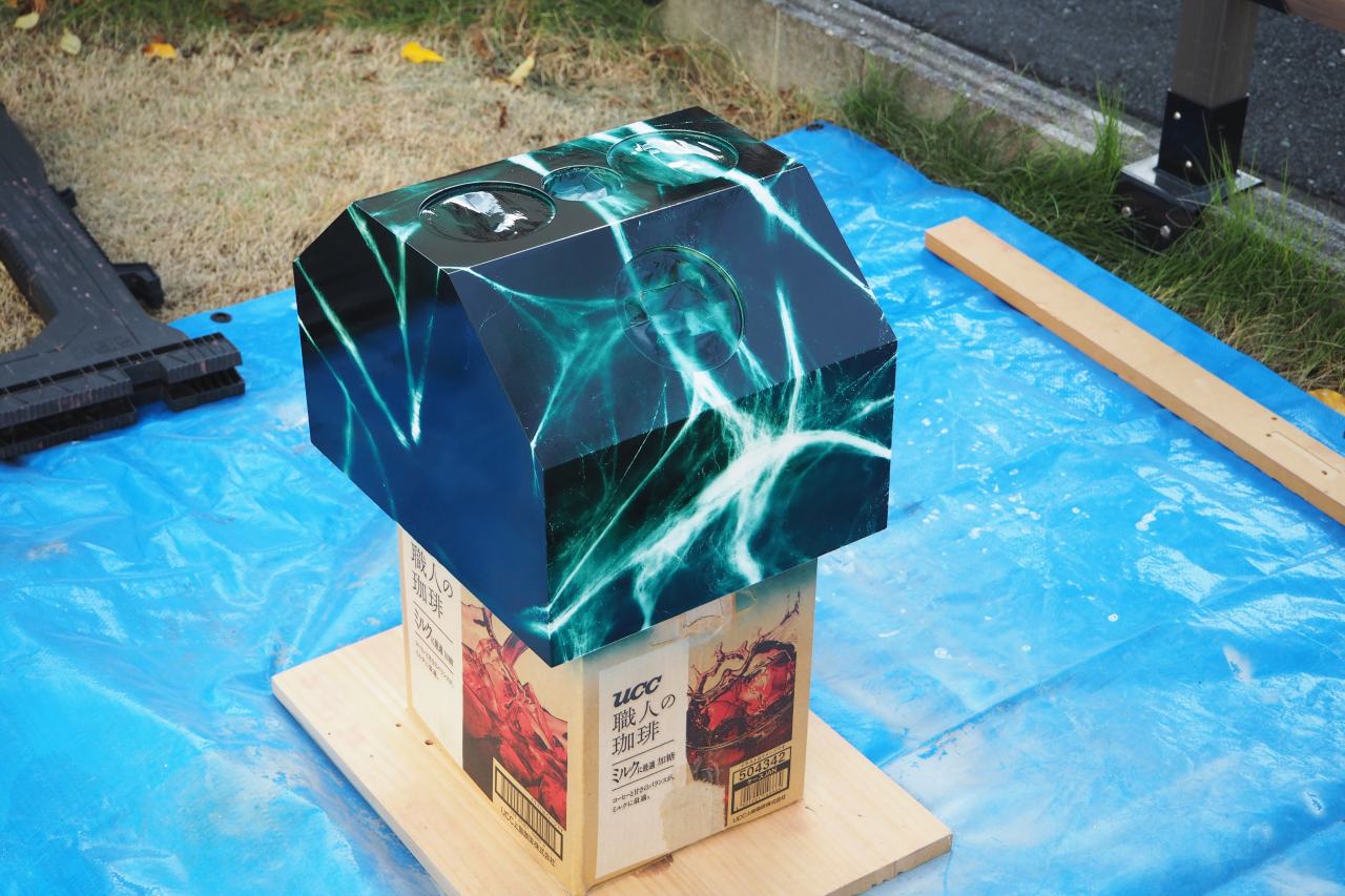 次に、ヘッドブロックにクリアー塗装を行います。塗装工程としては本当にこれが最後。