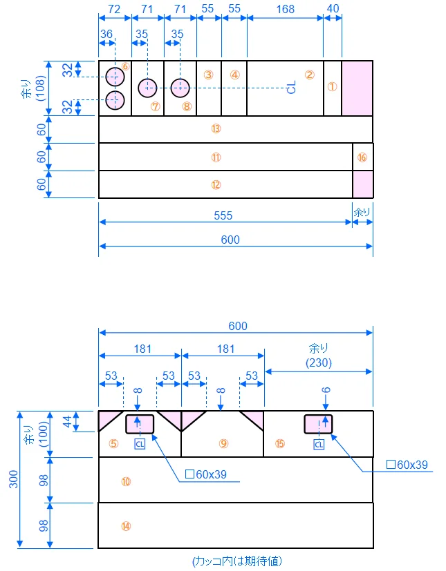現在は100mmで切ってあるが、この両端を落としてキレイな98mmに仕上げろ、と云っているんですね。