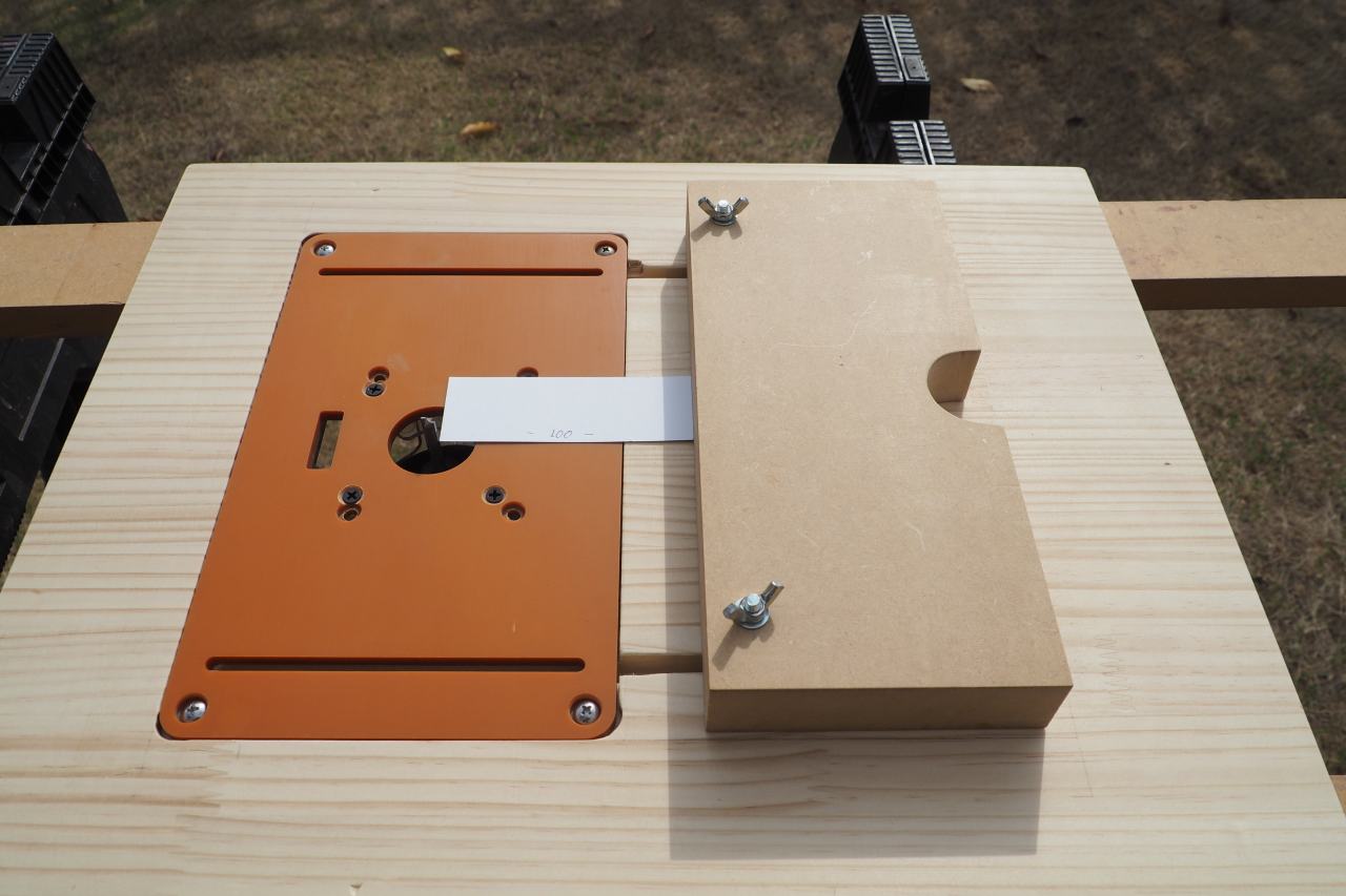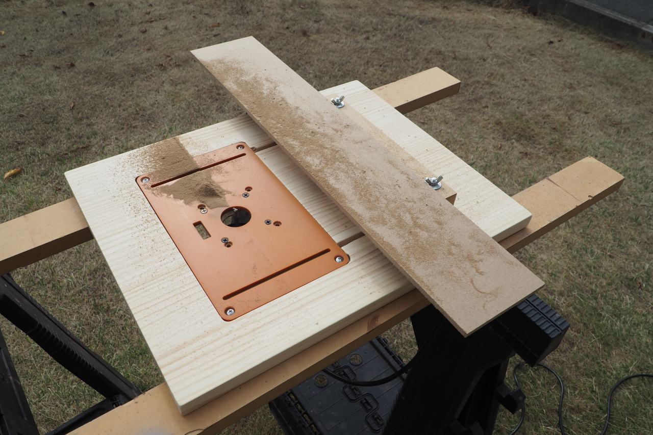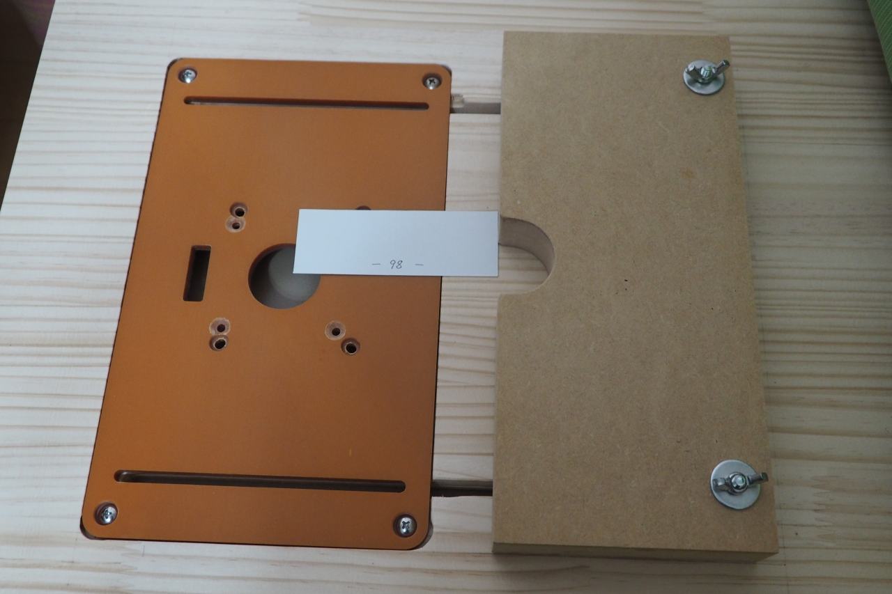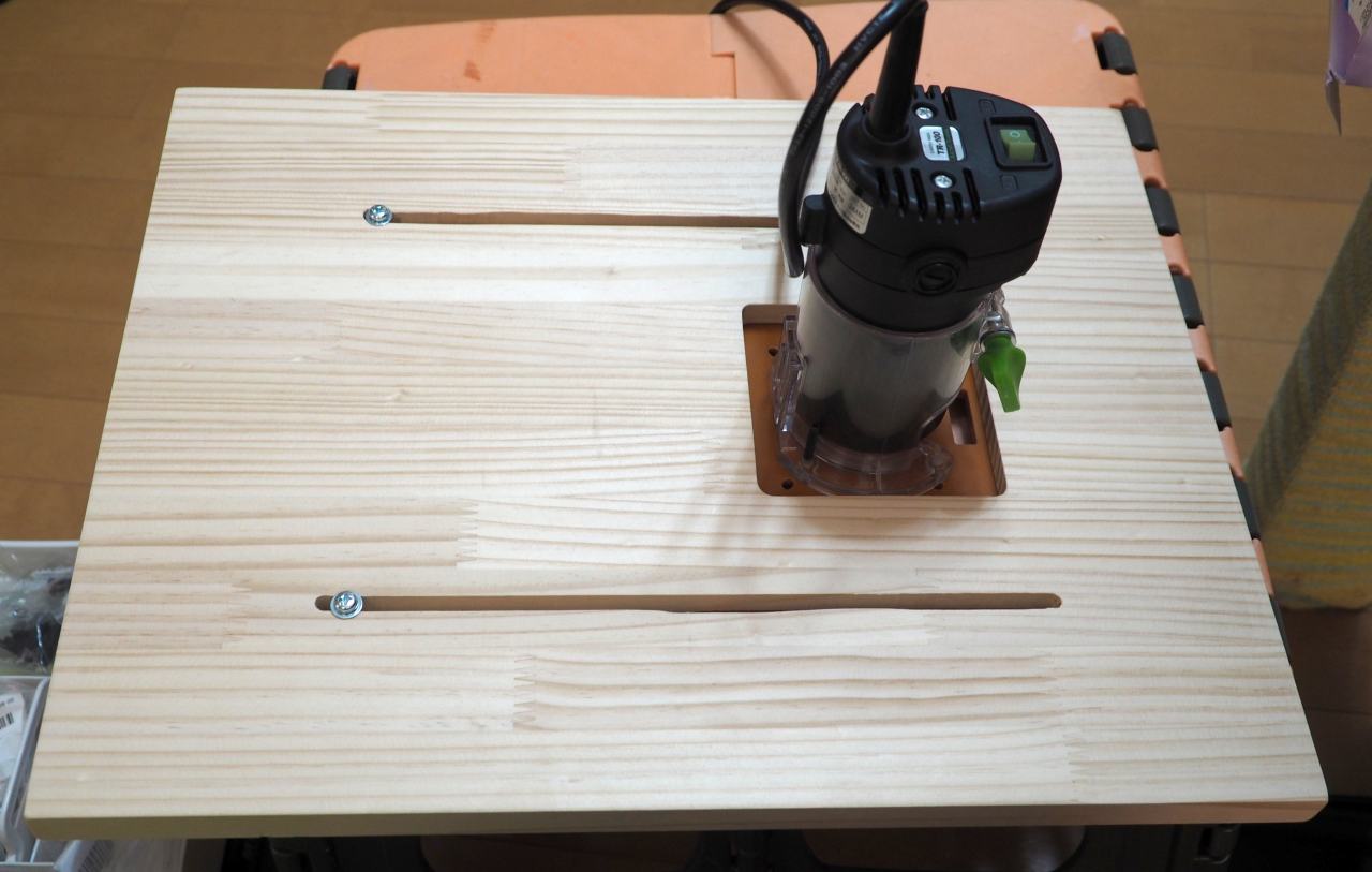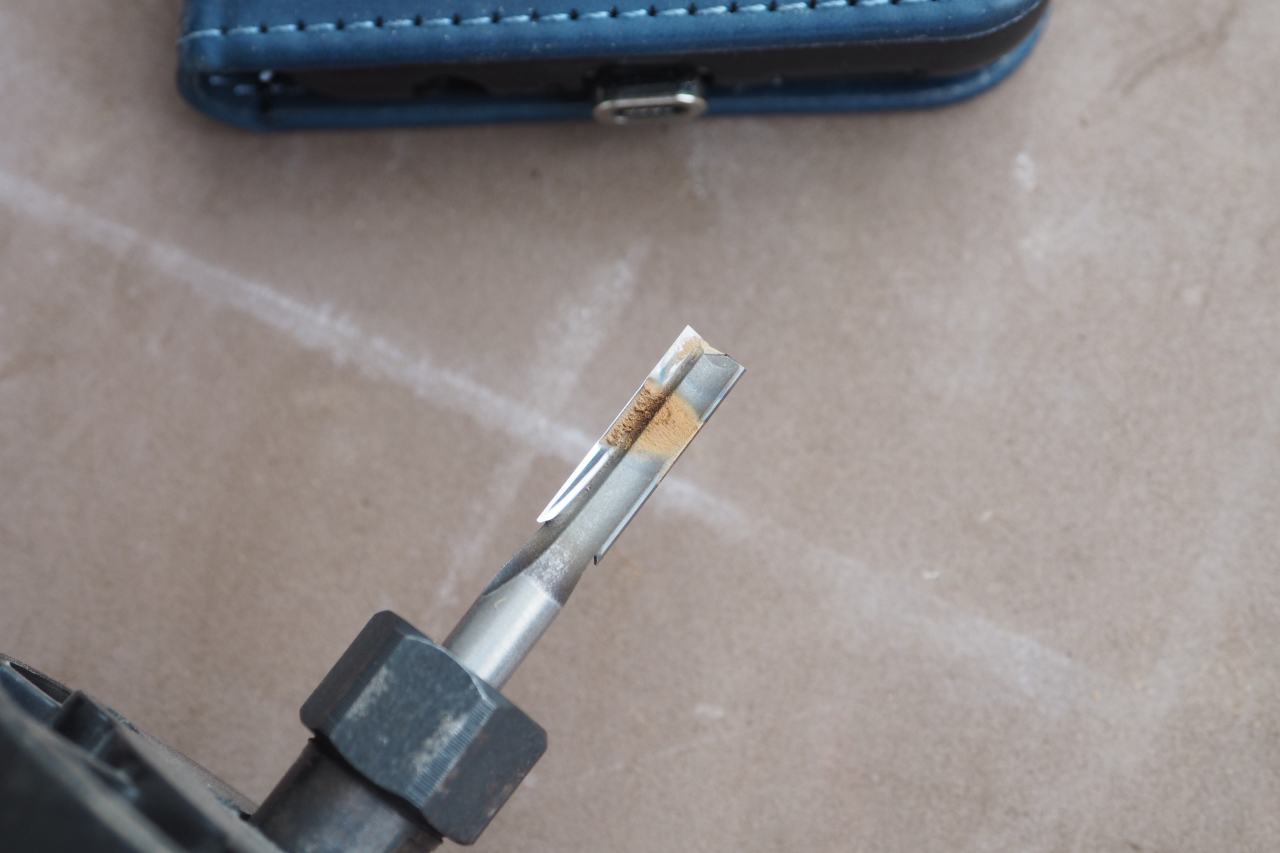 こんな感じ。板厚が薄いので、トリマーの刃は沢山突出させる必要はありません。