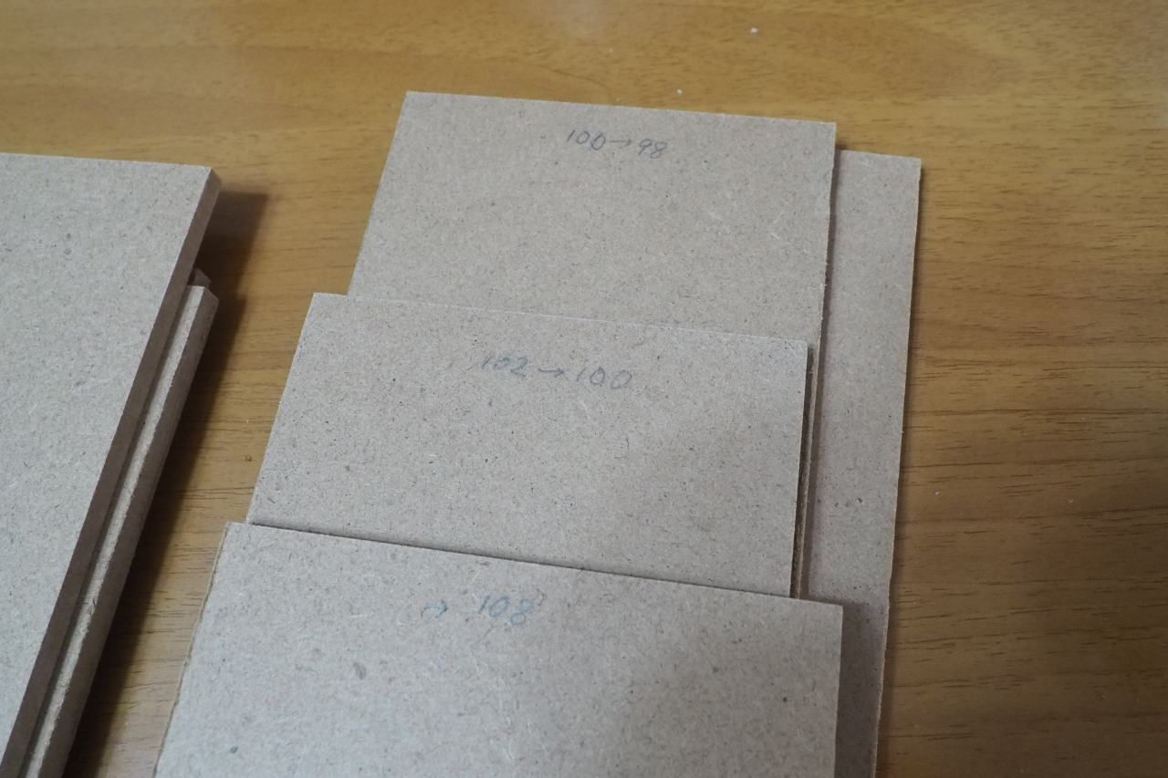 まずは108mmです。刃が最も突起した部位に厚紙を当てて計測しながら幅を微調整します。
