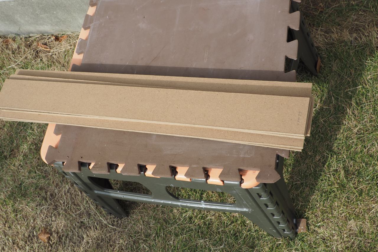 屋外に持ち出して、ウマの上にセットアップしていきます。