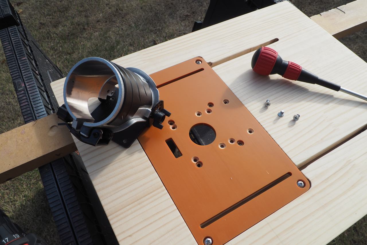 自作トリマーテーブルは完成したものの、このテーブルは傾斜ジグの取付には対応していません。本日はこのテーブルを再加工して、機能拡張します。