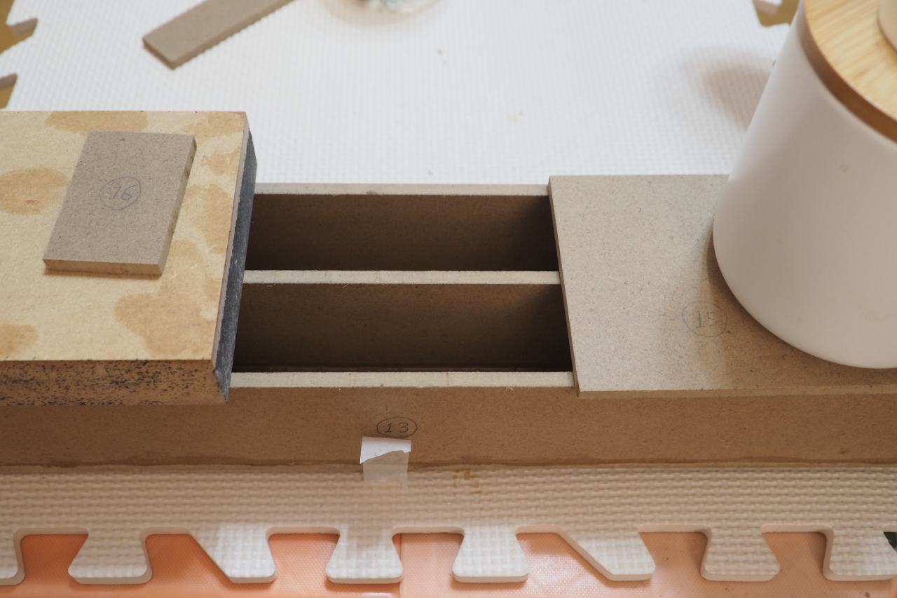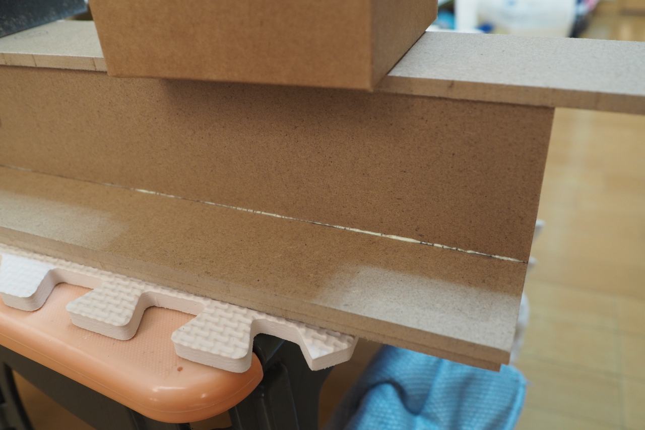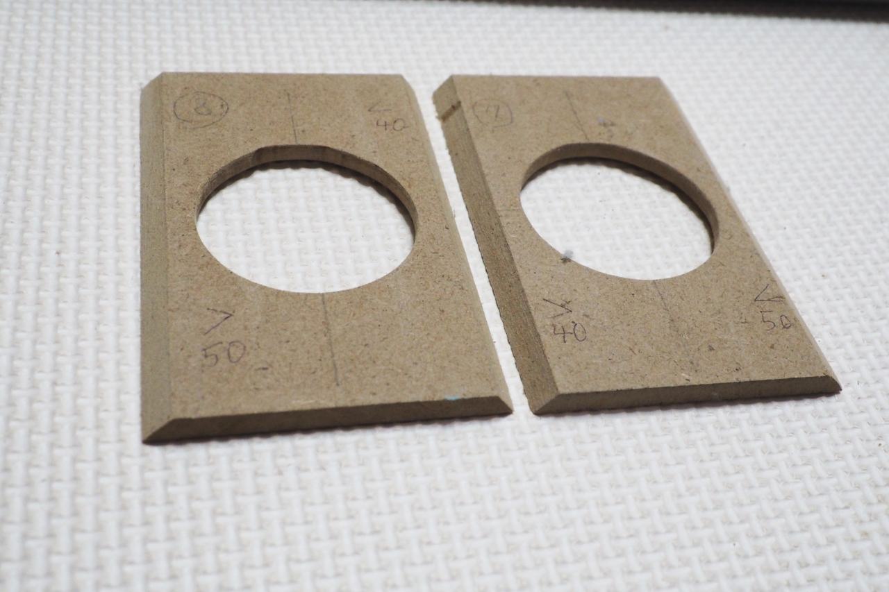 MX-1000Hと同様に、スラントバッフルのスラント加工をしたいのですが、とにかく部材が小さすぎて、従来の工法では困難を極めます(というか、指に近すぎて危ない。)
