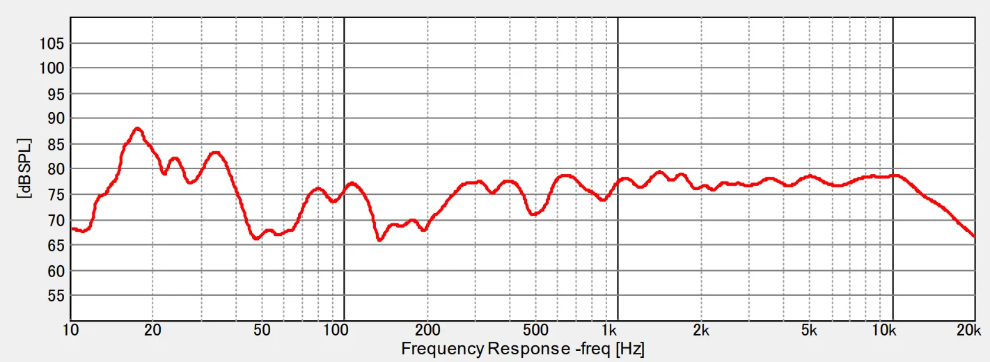 500Hz~2kHzに少々ガタガタした起伏が見られます。これは良くある現象で、一番可能性の高いのがサラウンドの逆共振。そして、背面の吸音不足や形状効果による共振。(つまり、信号伝送における所謂”反射”です)