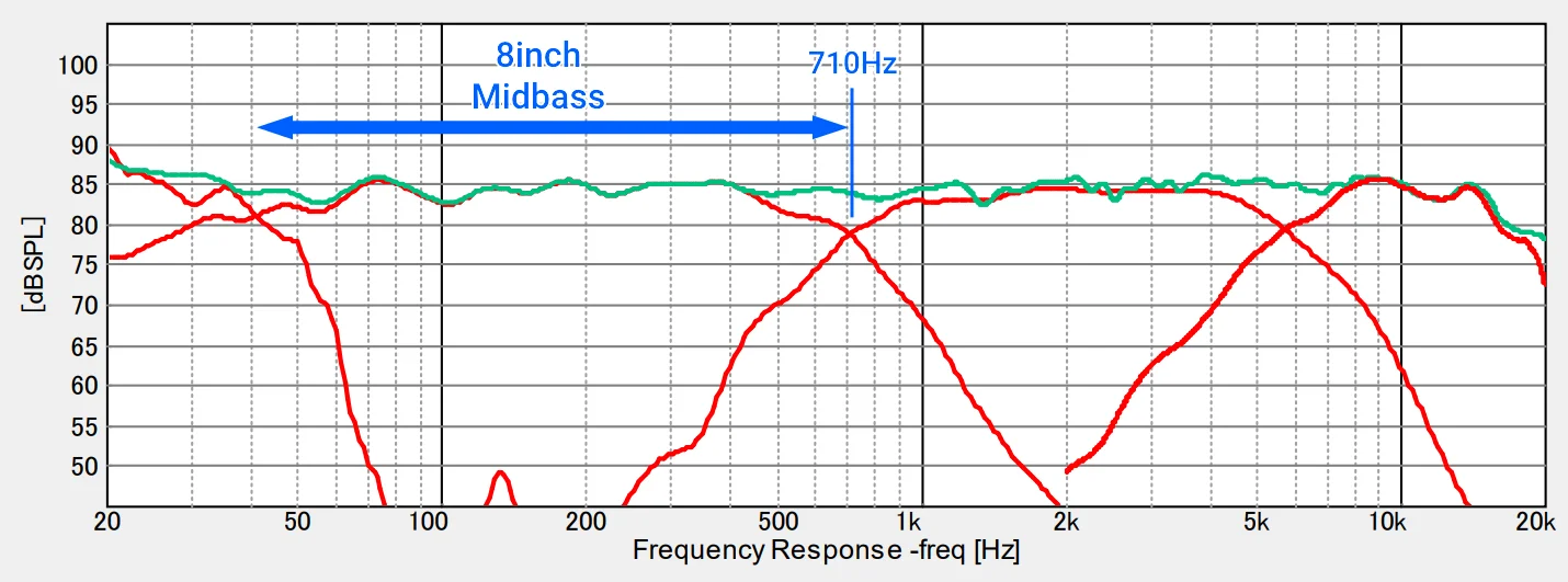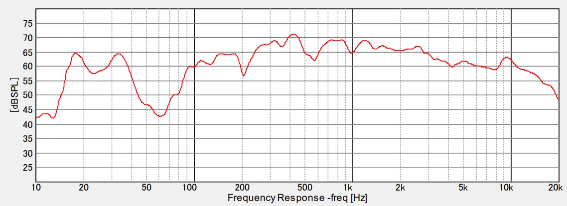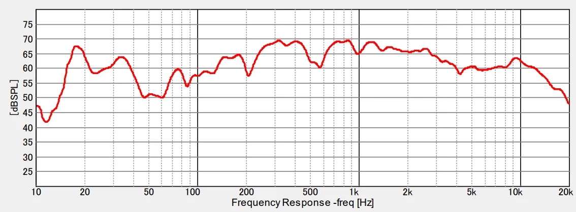 マトリクスヘッド、つまりフルレンジ側は80Hzくらいまでは再生できていて、そこからダラダラと低下していく特性でした。こちら側の低域をこれ以上伸ばすのは難しいと思います。