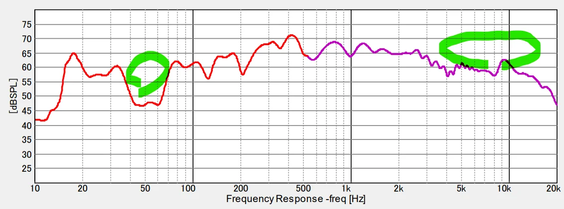 もう一方で、50Hz中心に大きなディップが生じています。設計段階で想定できた現象ですが、ここ、もう少し何とかならんかな。