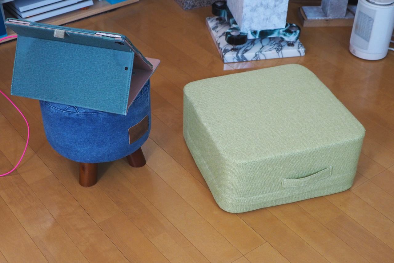 1000Hの真価を聴くには、どうしても床上高さ20cmの椅子が必要だった。。。そんなイス売ってません。クッションでもなかなか無い。