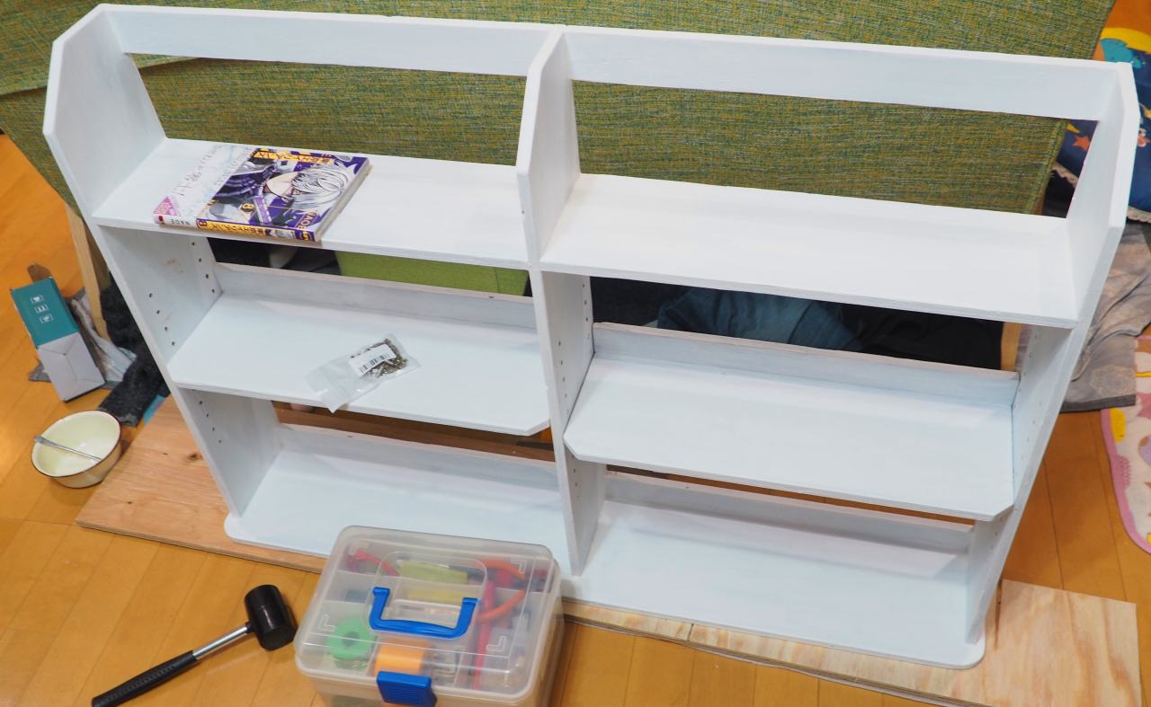 ちょっとギリギリすぎて、棚板が渋いですね。背面から差し込むとストレスなしでしたが。