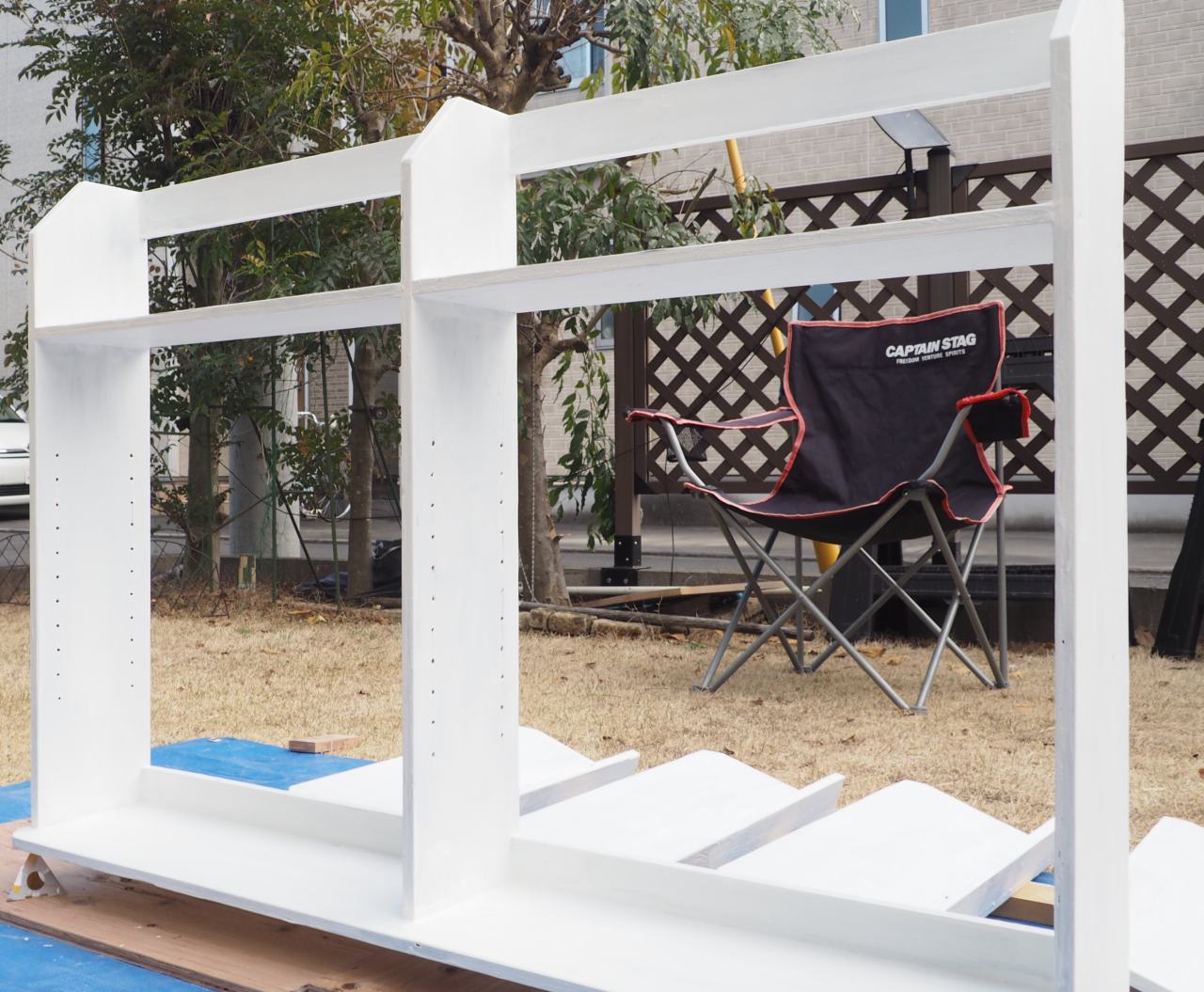 棚板が2枚抜いてありますが、お好みで高さ調整するように申し付けてあります。