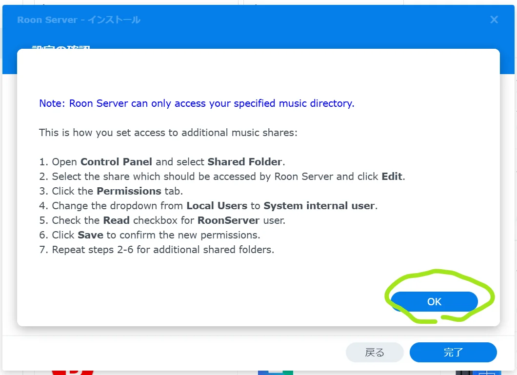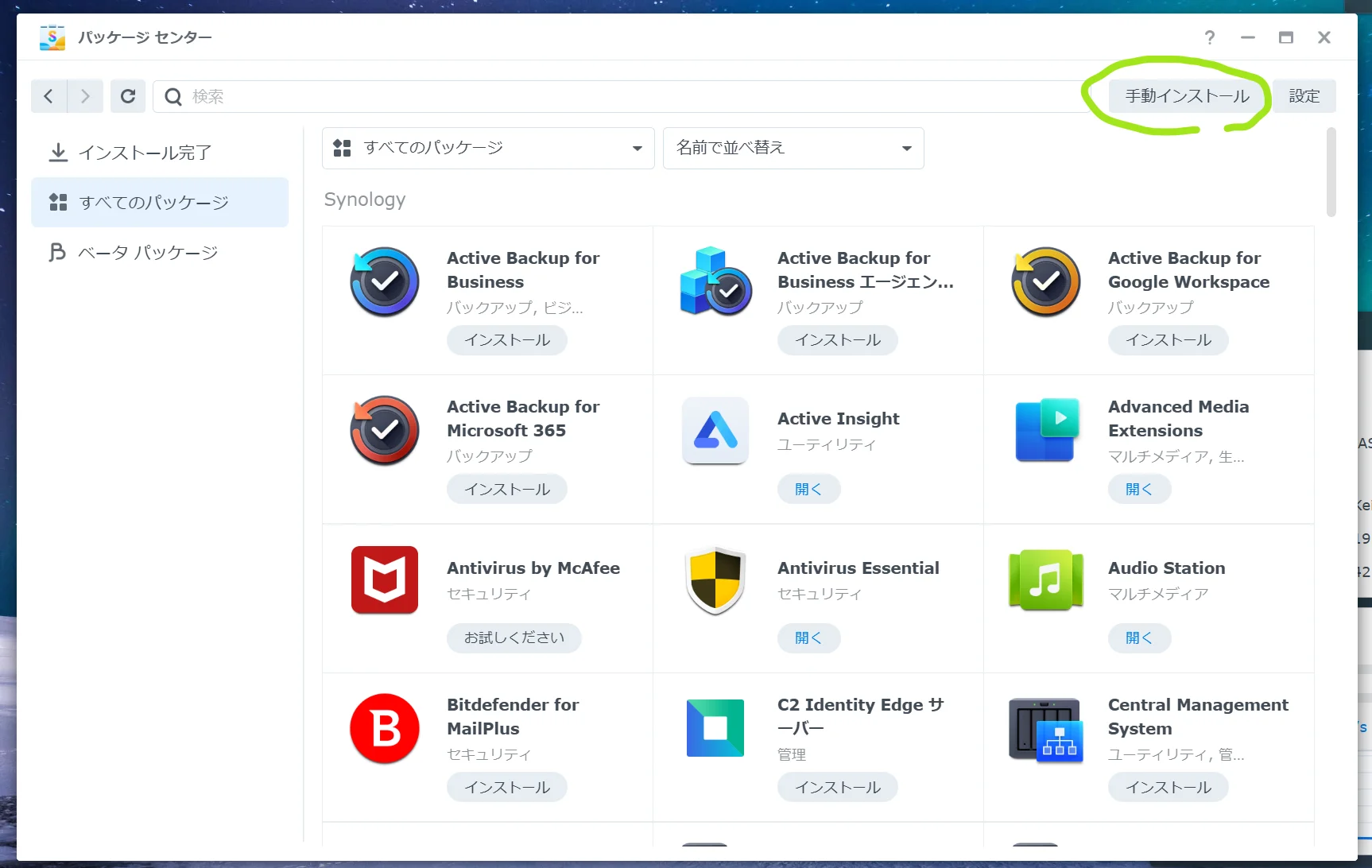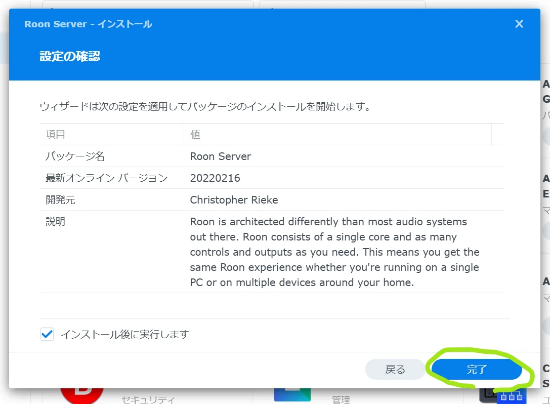 これをやっておくと、SynologyがRoon専用サーバーとして機能するようになる、という手順です。スクショの連続なのでご興味の無い方は以下スキップ。