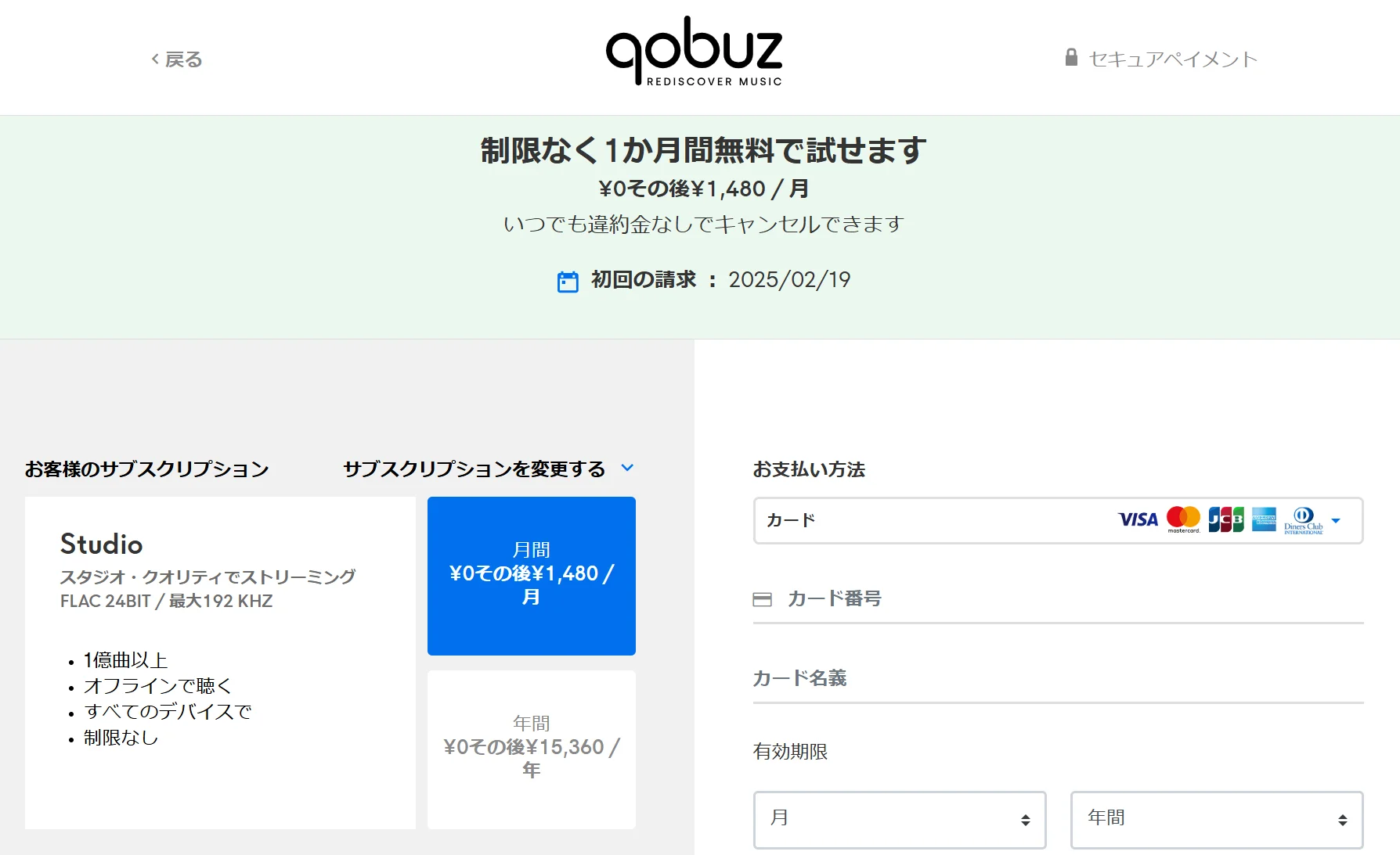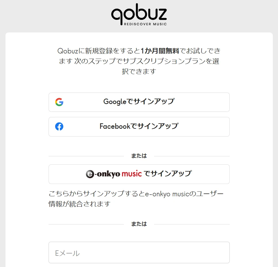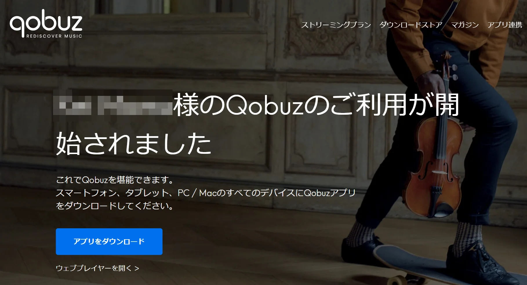 私の場合は今回qobuzをトライアルしてみたいので、qobuzを[始める]します。