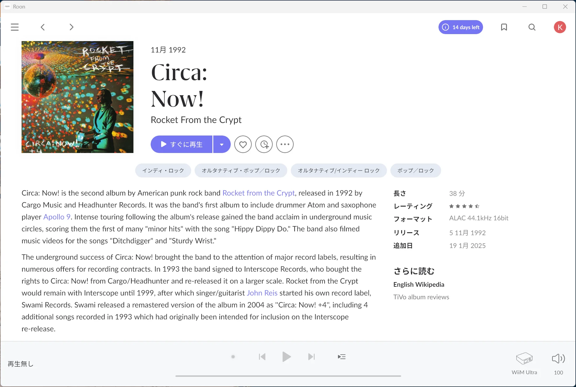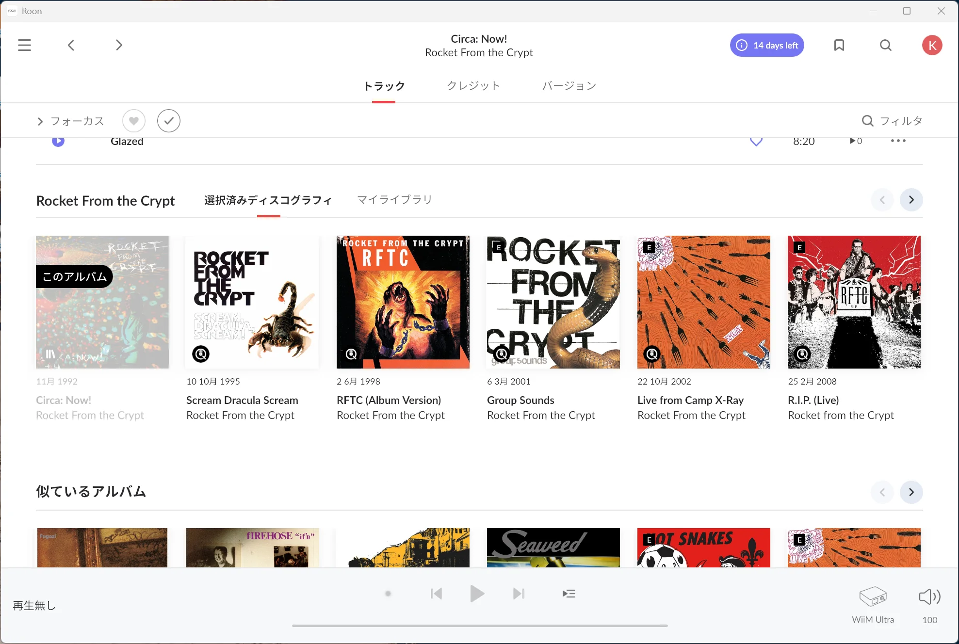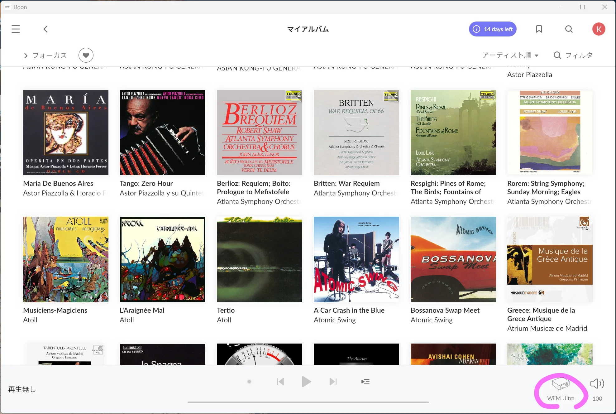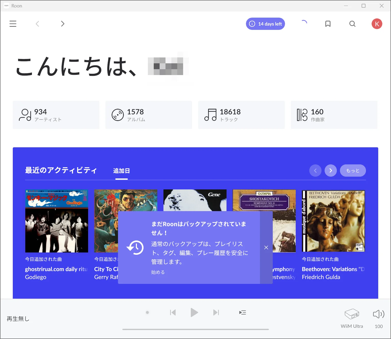 なぜかというと、WiiM Ultra は Roon Ready だから、です。ここの再生デバイスは後からでも追加できますが、私の場合はたぶんローカルPCかWiiMでしか再生指定しないでしょう。