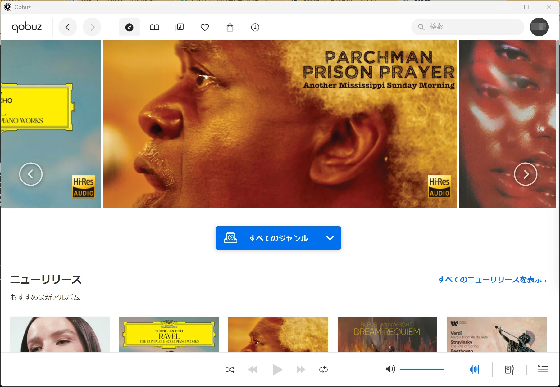 こちらは、RoonじゃなくてQobuzのアプリを立ち上げた様子です。