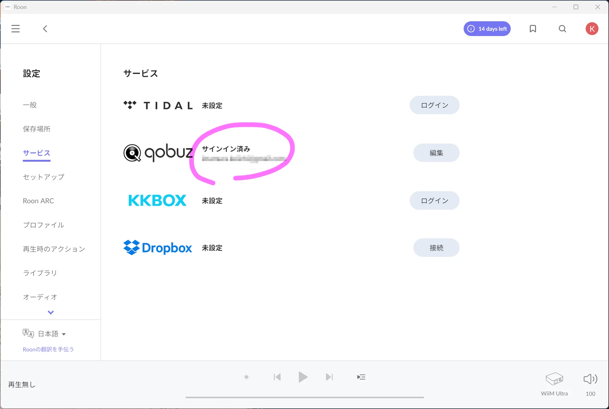 qobuzだけは連携済なのでアクティブ表示になっています。