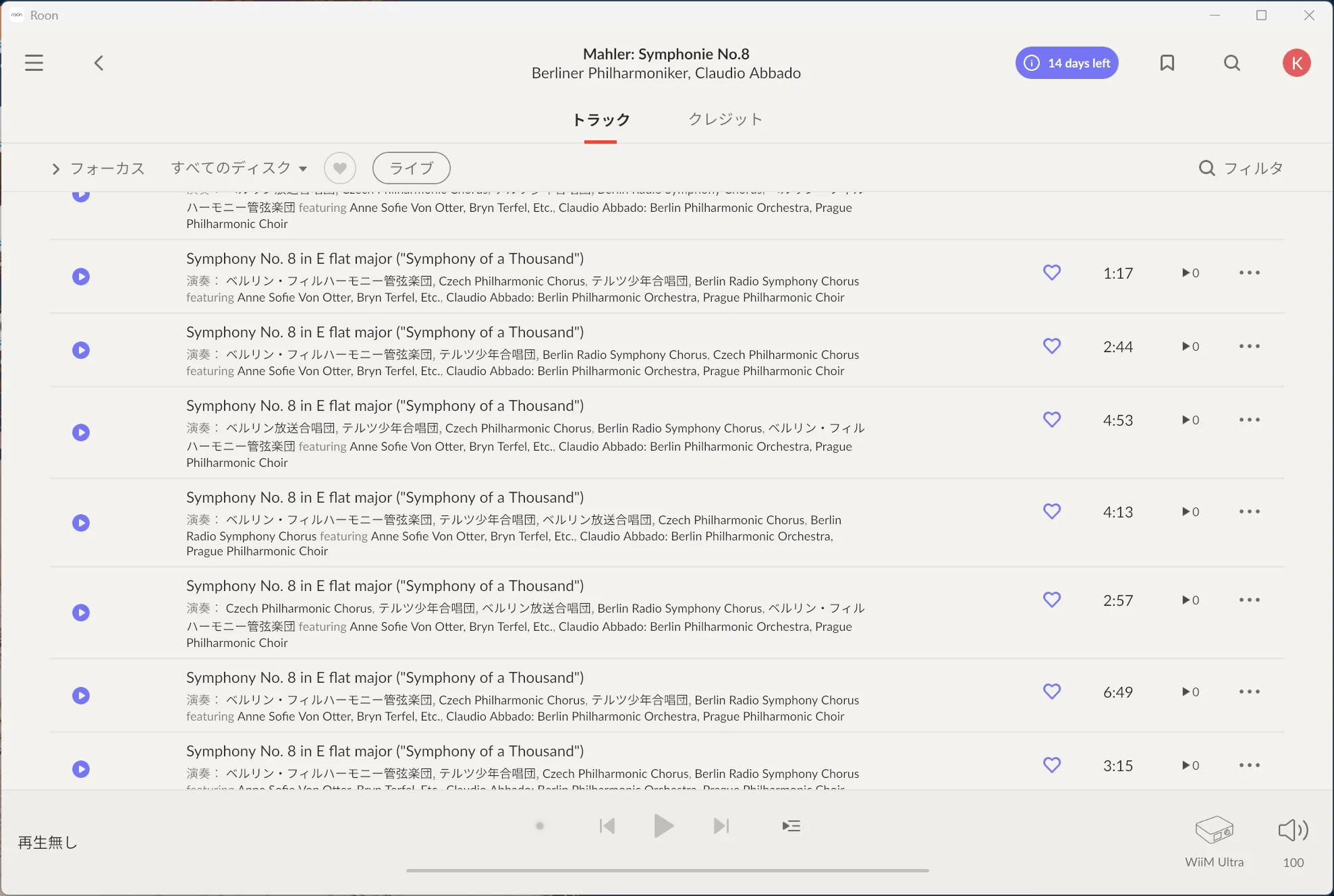 なぜなら、Roonは自分が所有しているライブラリと、外部のストリーミングサービスの楽曲を同列で提示してくれるからです。そこがRoonの真骨頂なのかもしれません。何処にある音楽なのだろう?自分は持っていたっけ?そんな事は意識する必要がないのです。