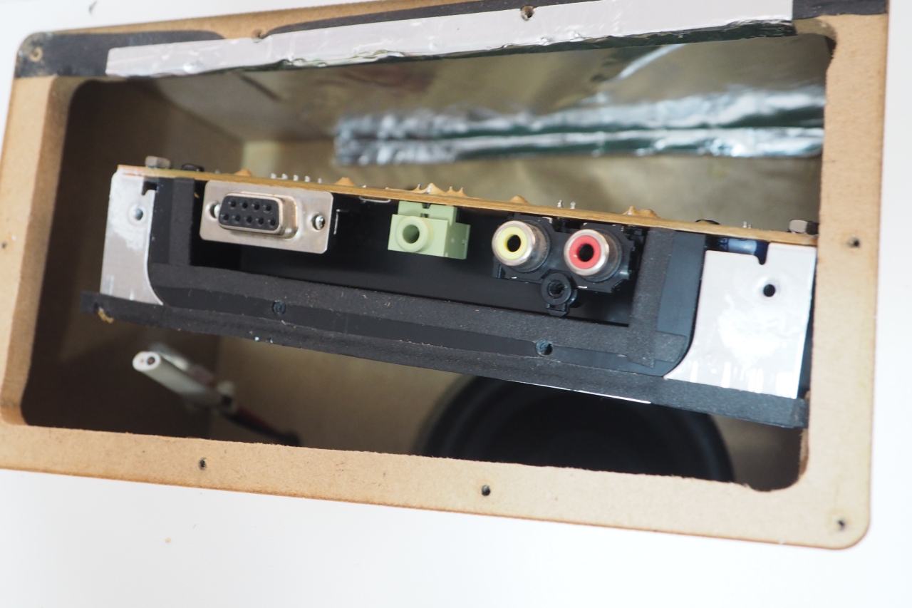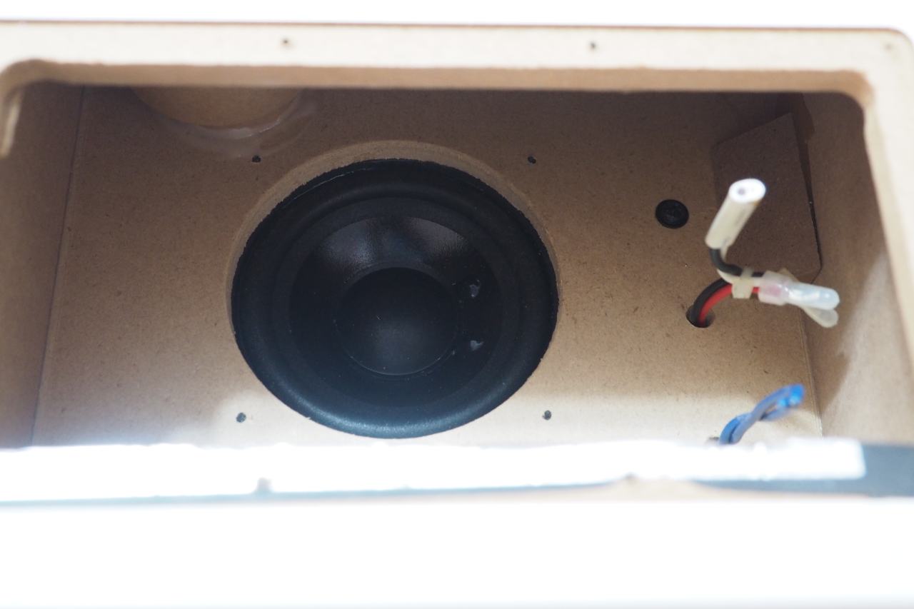 早速、通電して少し鳴らしてみました。まったく問題ありませんね。普通に鳴ります。小型のクセに、低音がずんどこ良く鳴ります。ということは、これをバラして改造すれば、Λ専用機に化けることができます。