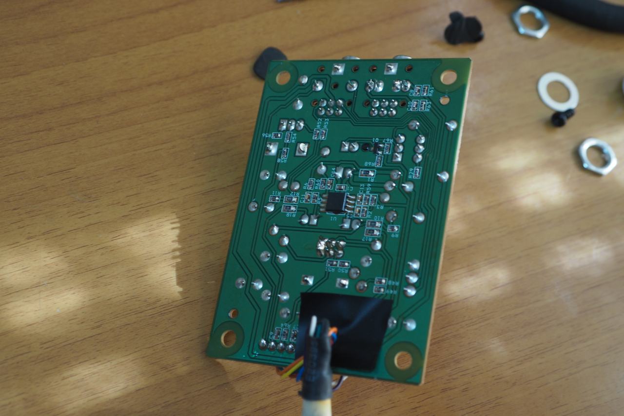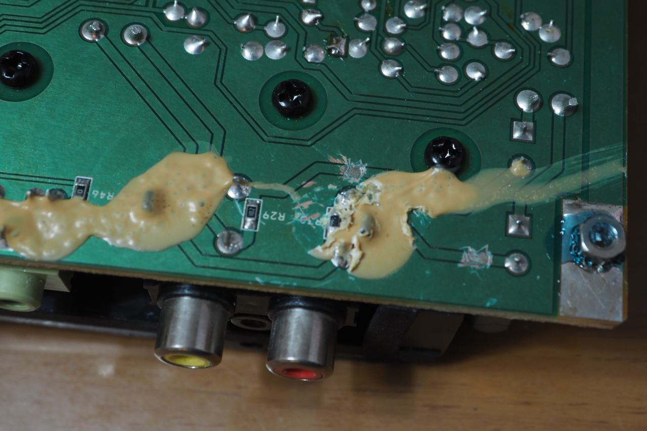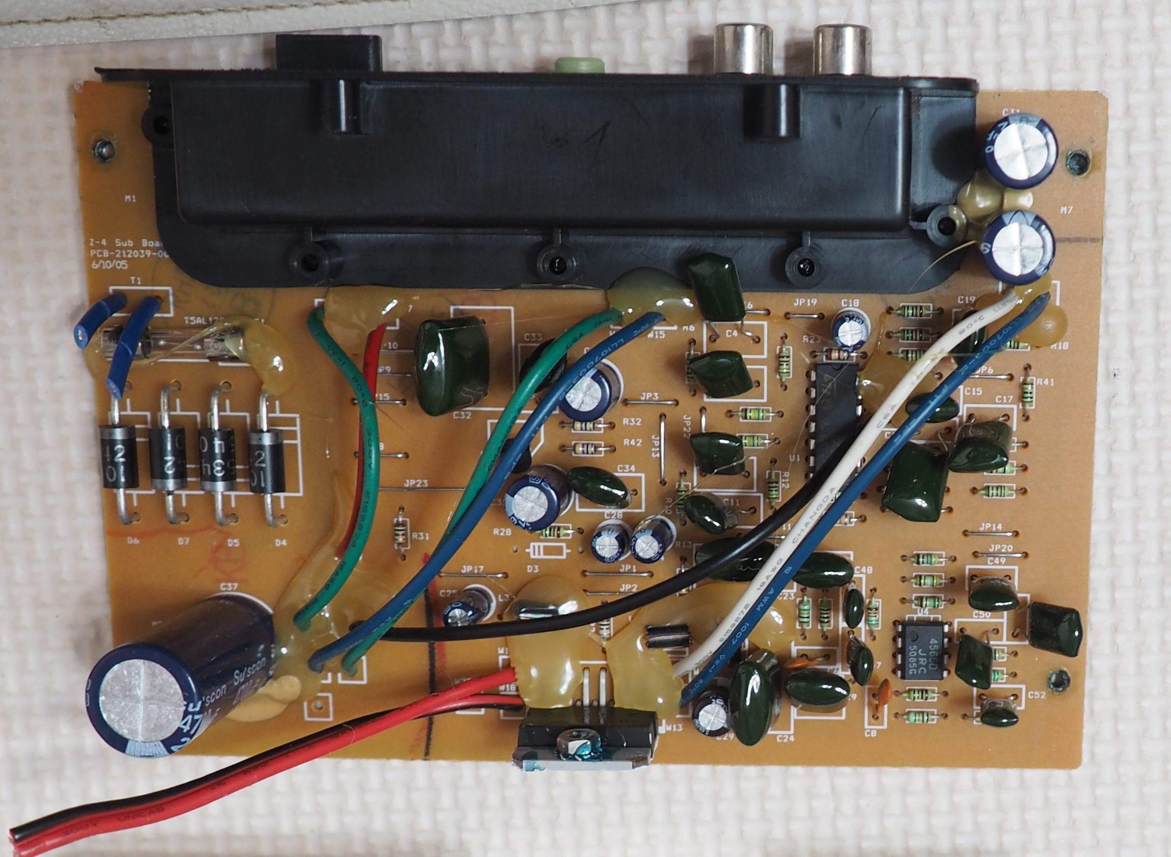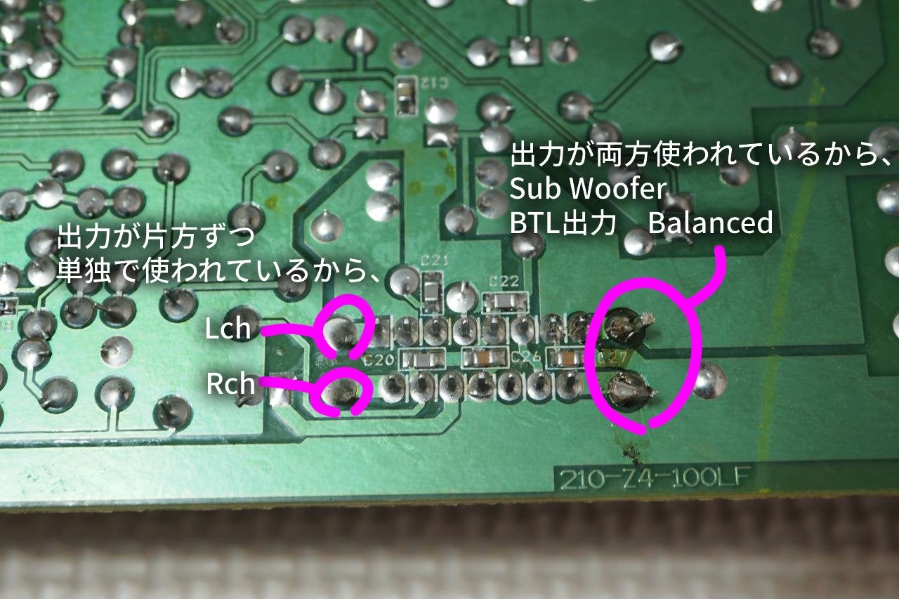 ハンダ面にサブウーファーのミキサー兼LPFが載っていますね。やっぱりなー。