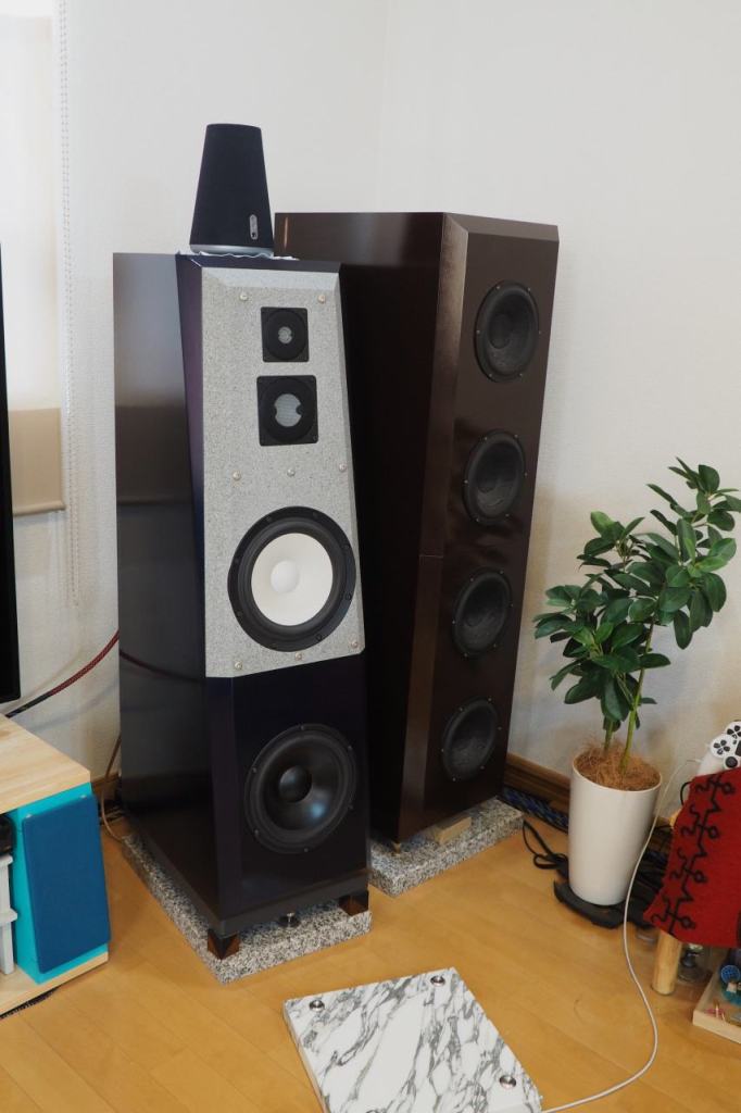 能率が低い代わりに、低域の入力を許容できるというわけです。ただ、入力ができるというだけで十分な低音が再生できるわけもありません。だから、中低域はその下のウーファー(というよりそちらもフルレンジに近いのかな)に任せていると思います。