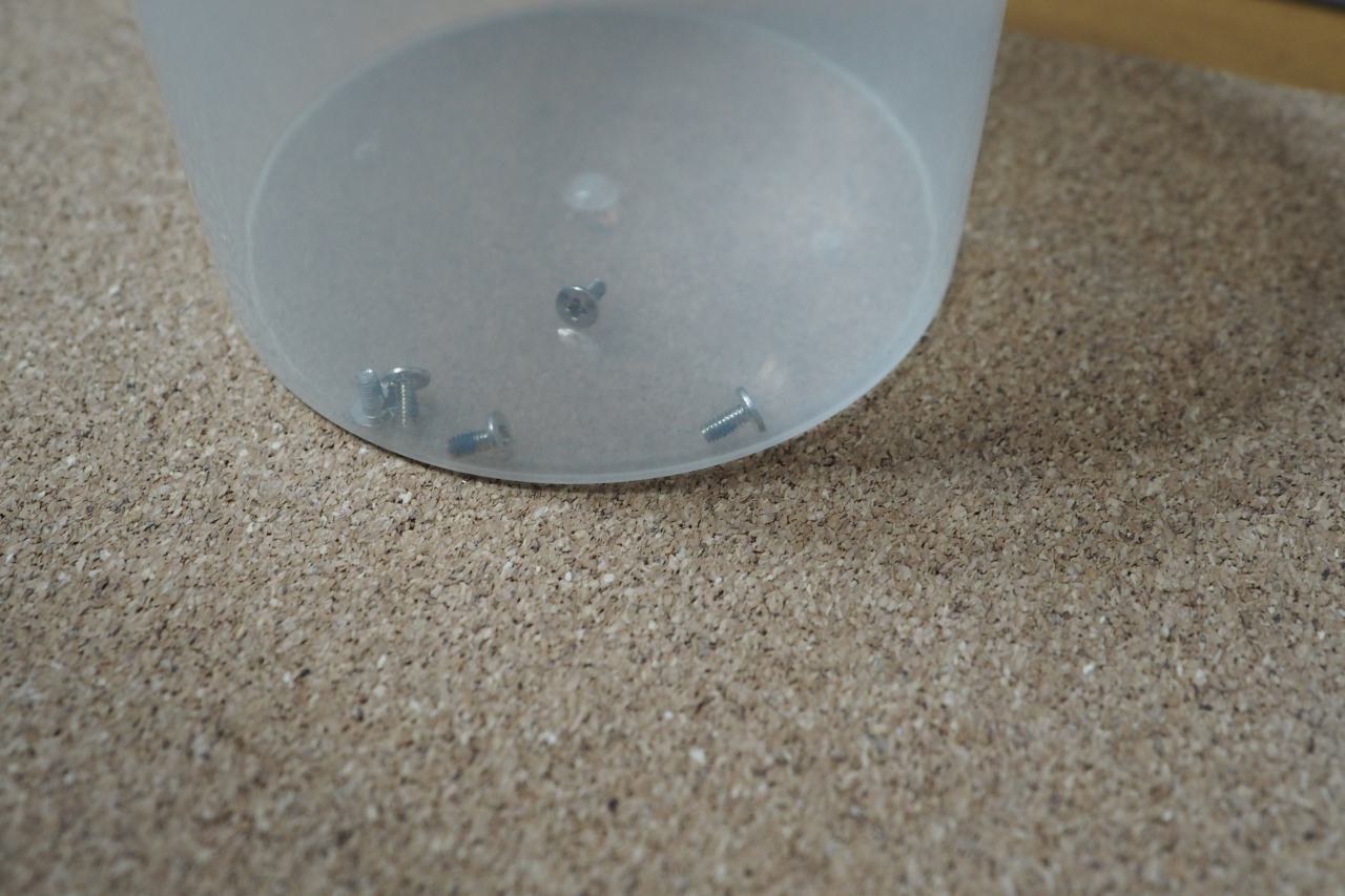 外したねじ・ビスは忘れずケースに入れて救済しておきましょう。その辺に置いておくと必ず紛失します。
