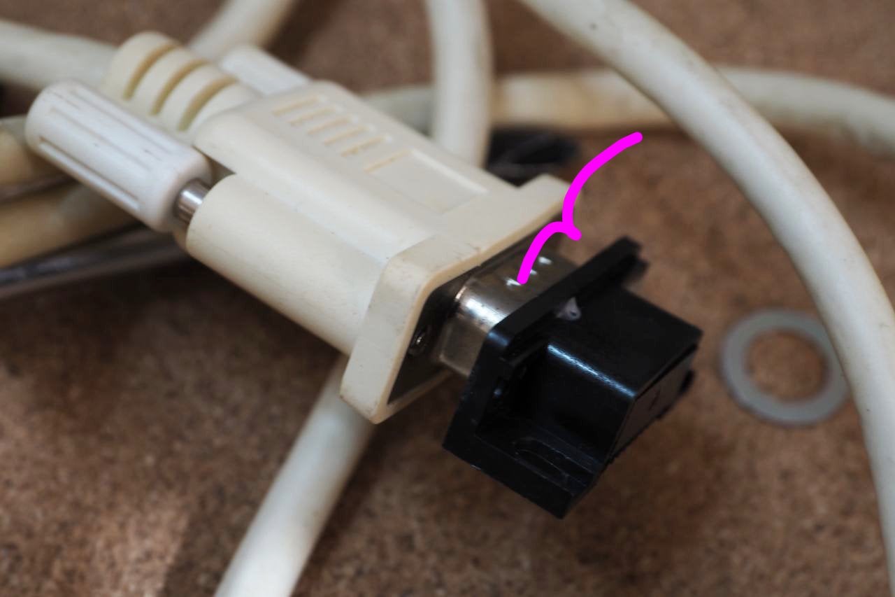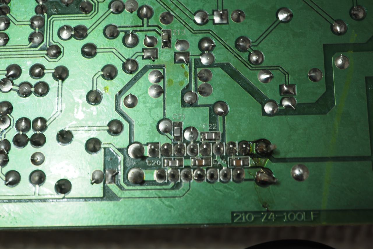 RC232Cのコネクタ。リモコンケーブルが接続される部分です。どうせリモコン基板を内蔵し、それの配線をするのであれば、ここのランドをそのまま流用するのが良さそうです。それで、配線するのにジャマだからこのコネクタは撤去してしまうことにしました。