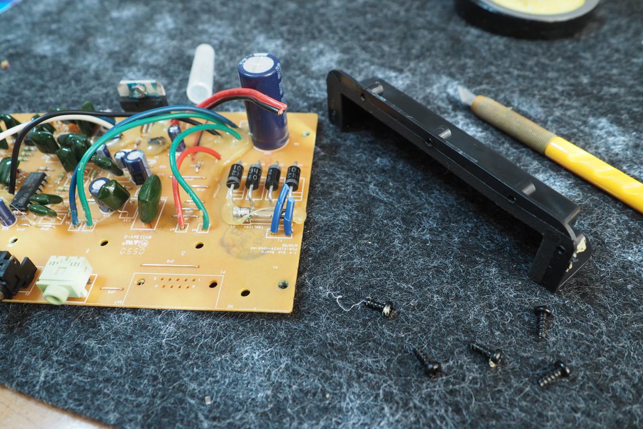 コネクタもキャパシタも除去しました。余計な配線もどうせ延長するから外した。随分スッキリしました。