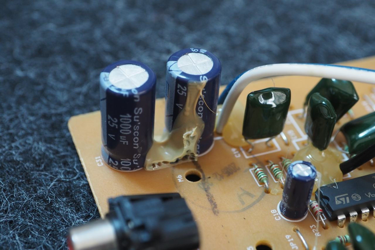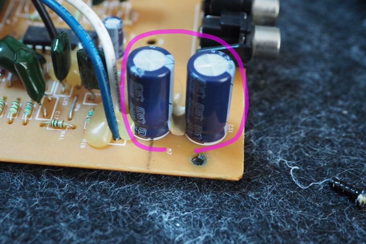 ここには1000uF/25Vが付いています。これは出力DCカット用。
