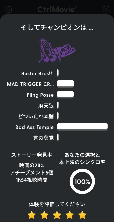 その場で投票した結果が集計されて、その上映館のその上映会での、1回かぎりの勝敗が決定されます。