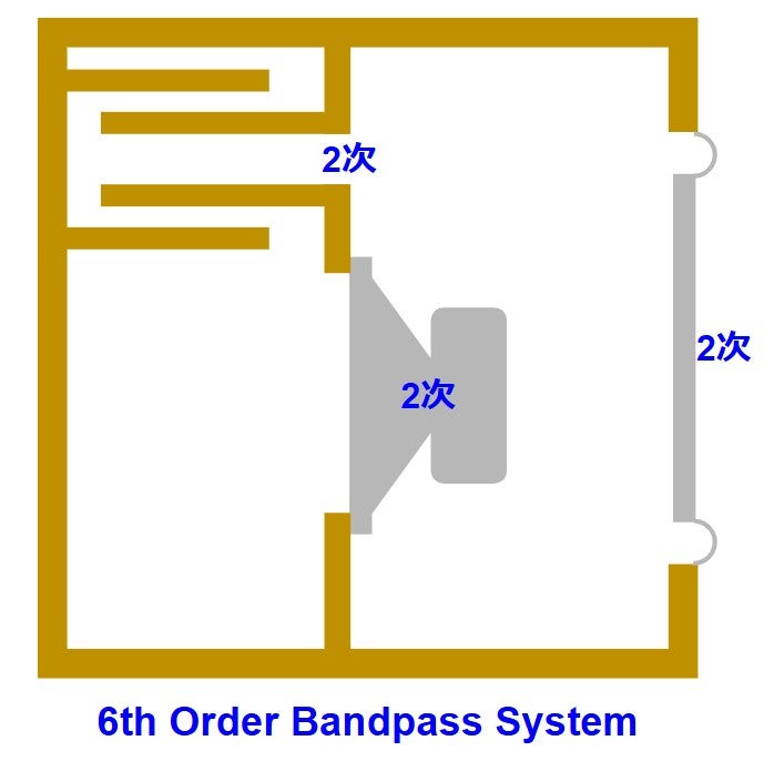 ウーファーのFsで1極、内部ポート共振で1極、PRsの共振で1極。全部で3極です。つまり6th Orderになります。6th Orderといえば、私が最近MX-1000Hで6次系サブウーファーを作ったのが記憶に新しいところですね。