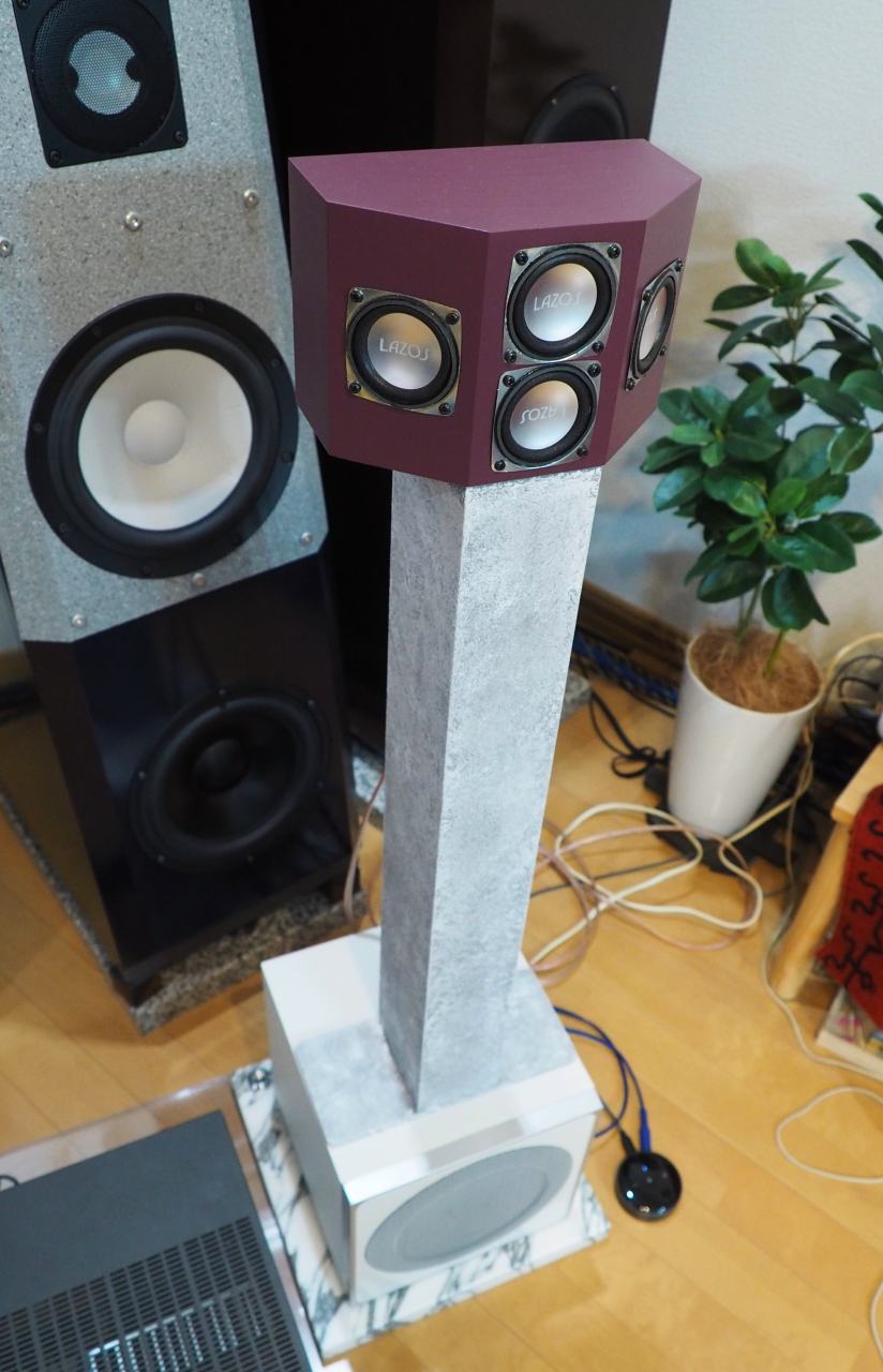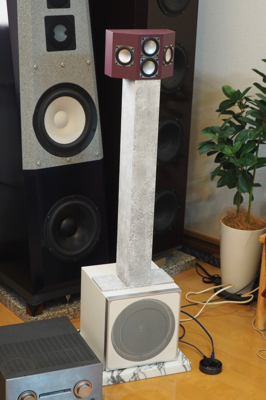 また、Λ単体だと少し背が低すぎて、ソファに座ると具合が悪かったのですが、このサブウーファーに乗せることでちょうどヘッドが耳の高さ辺りになり、音響効果も最大化されます。