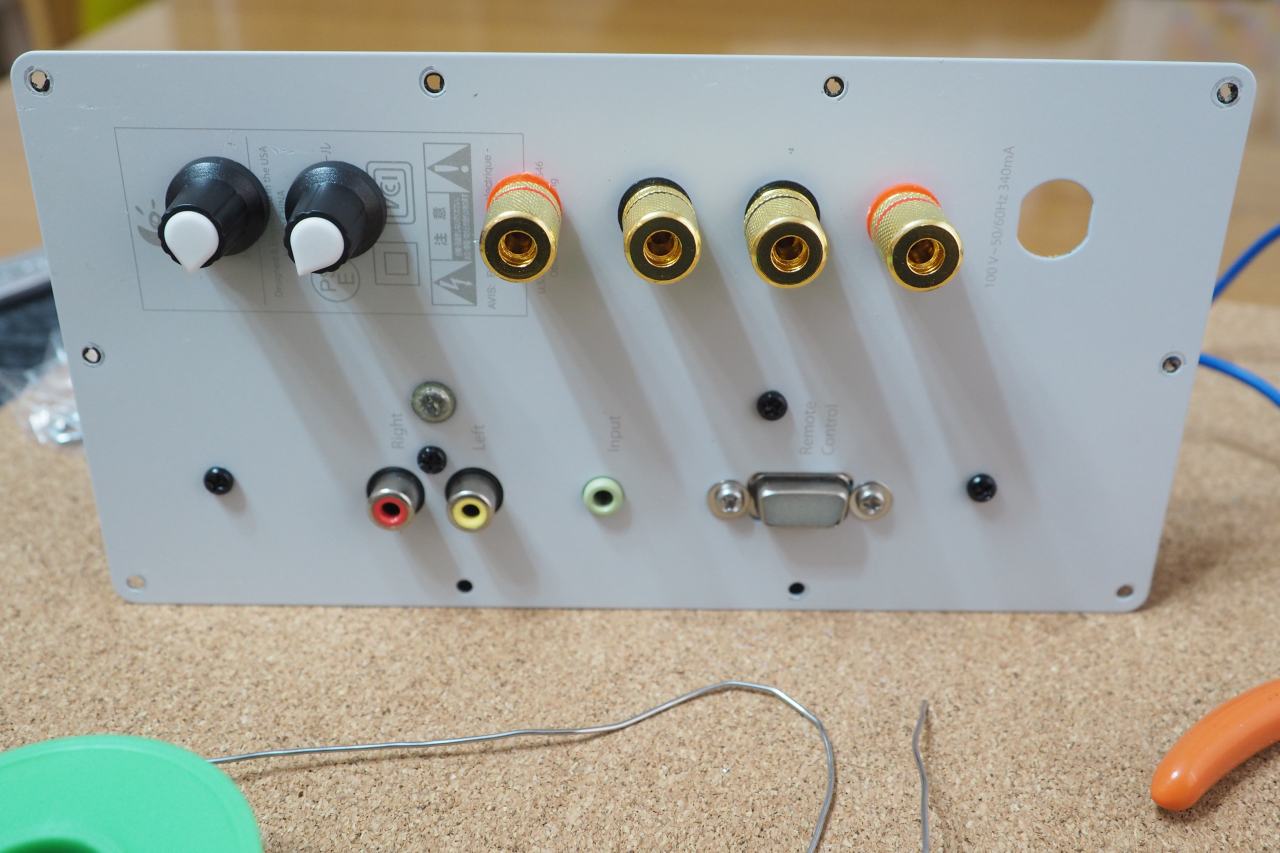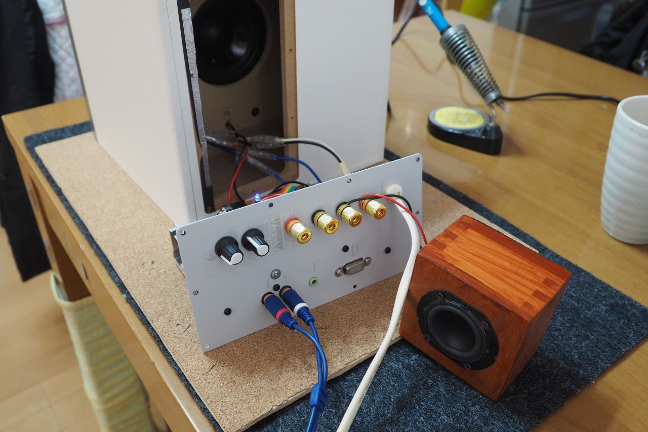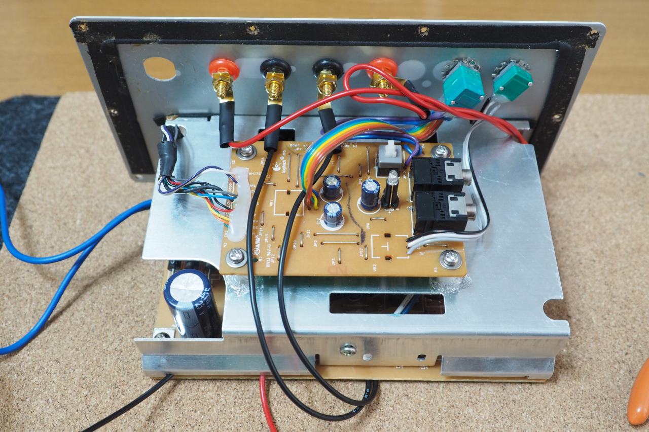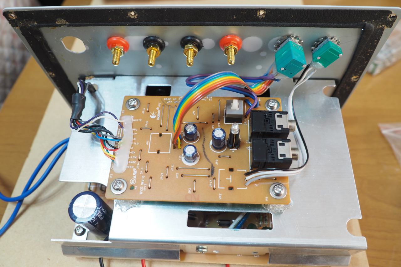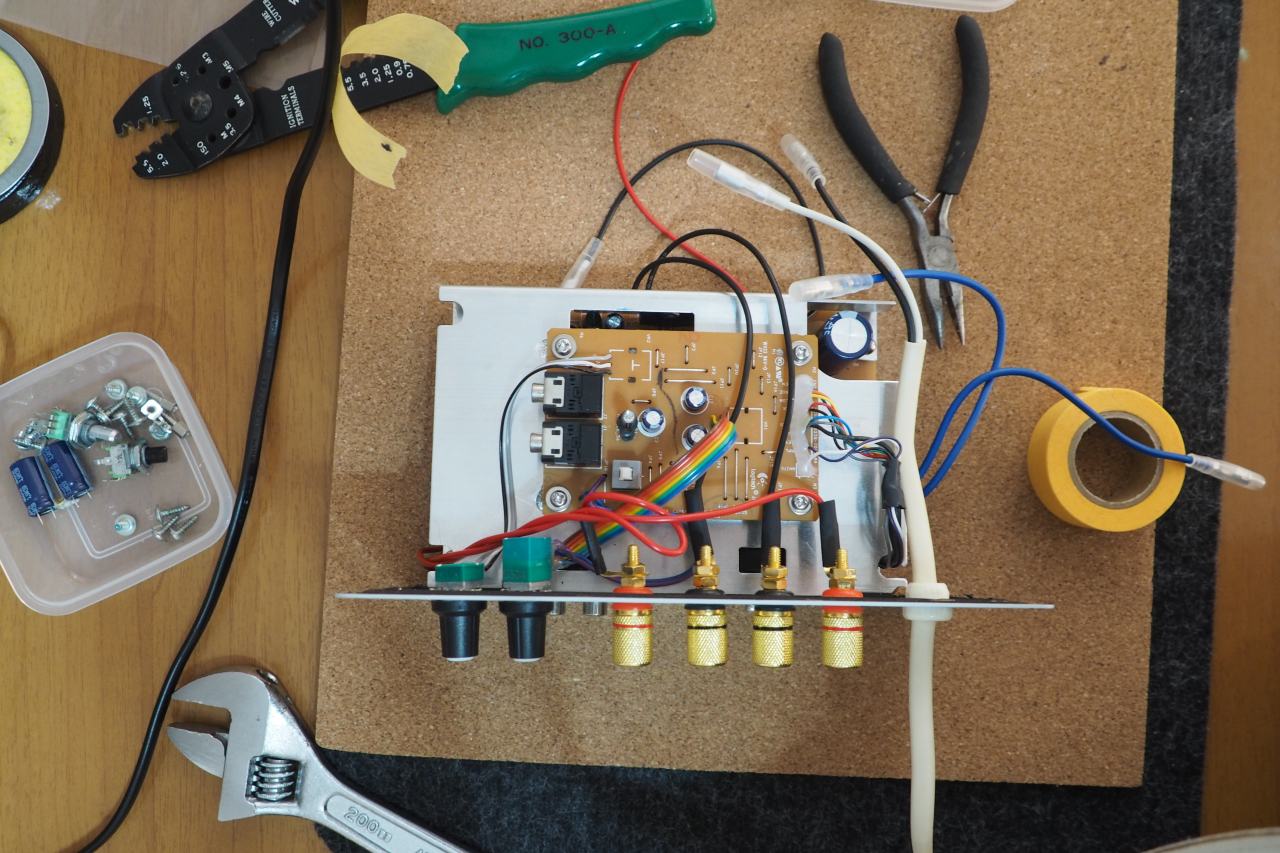 いきなりフタを閉じるようなことはしません。バラックの状態で電源を入れ、各chから正常に音が出るかテストしていきます。