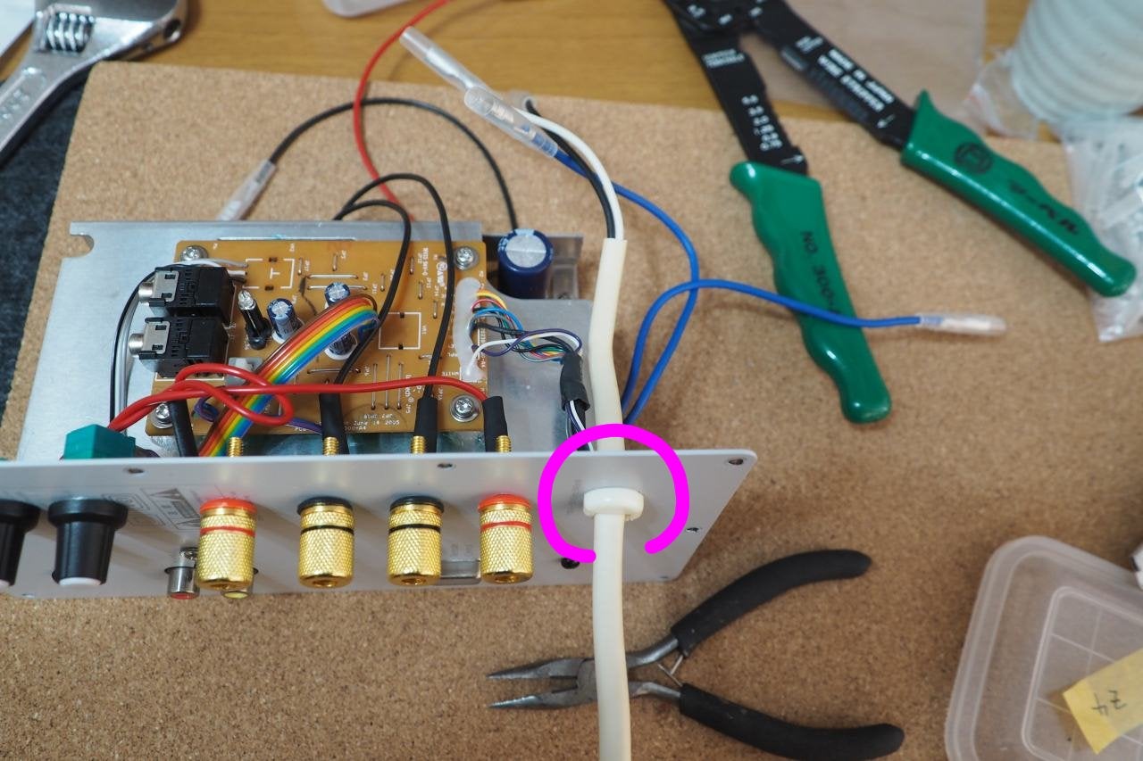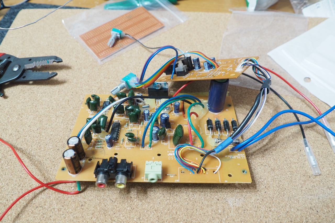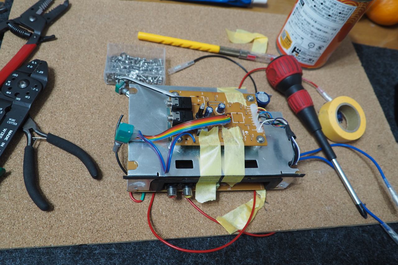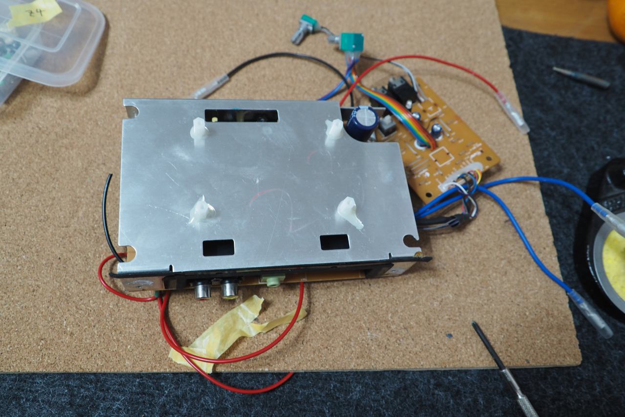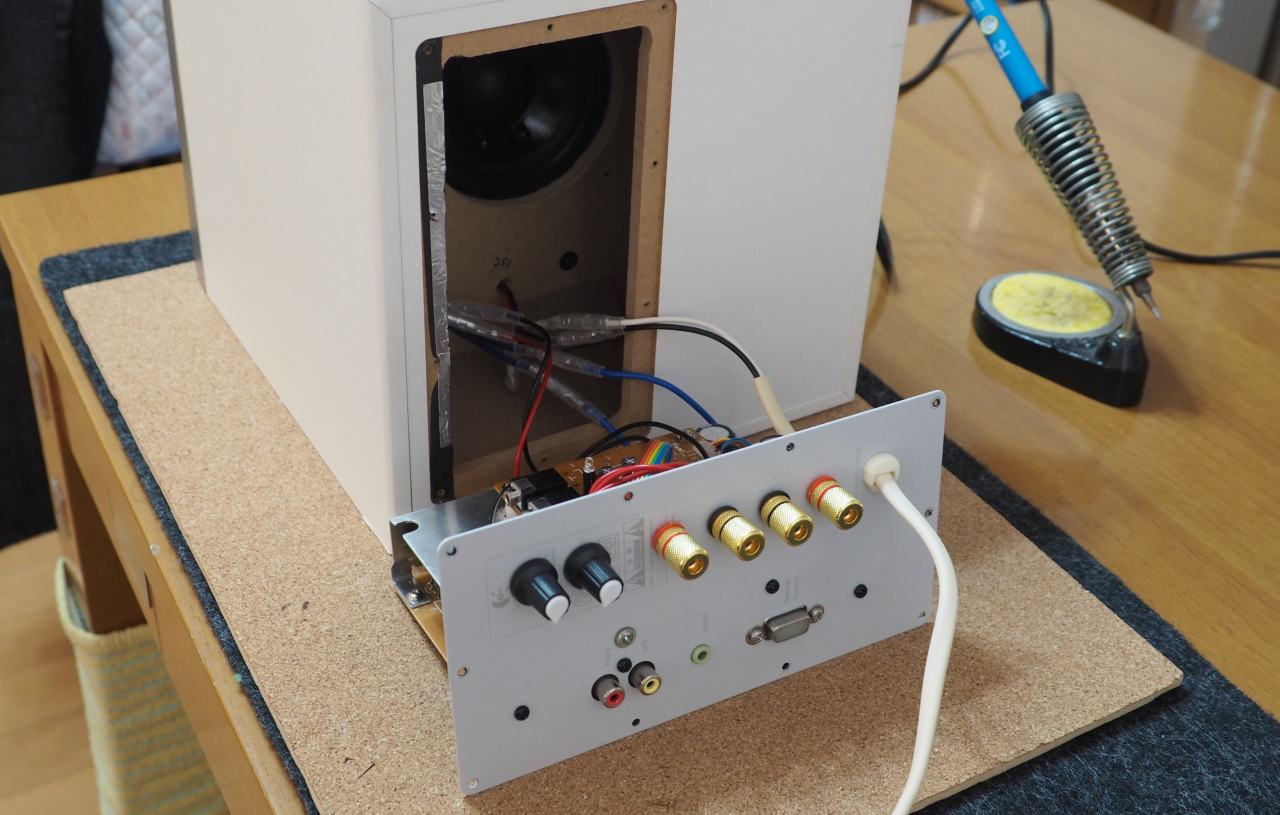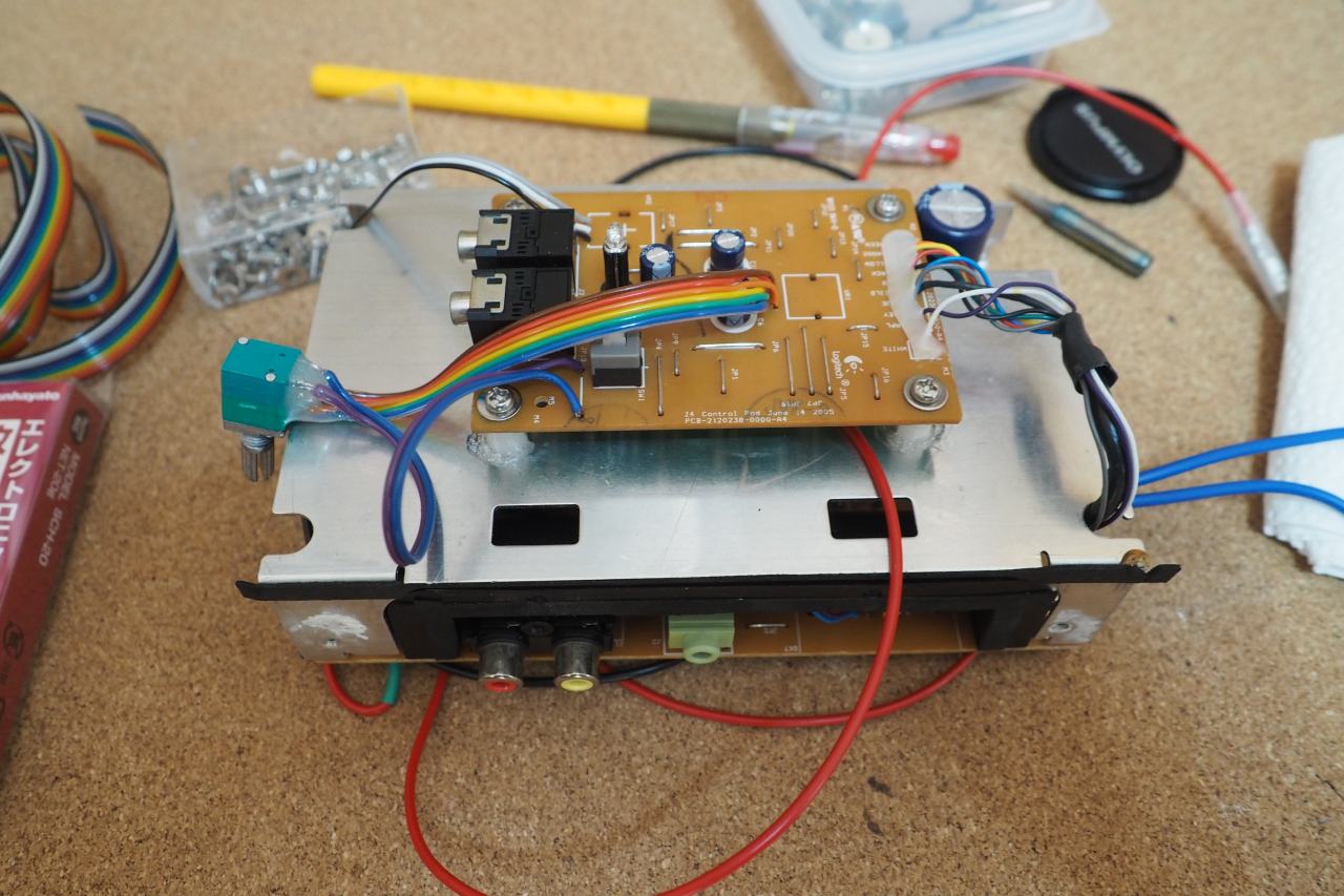 いきなりフタを閉じるようなことはしません。バラックの状態で電源を入れ、各chから正常に音が出るかテストしていきます。
