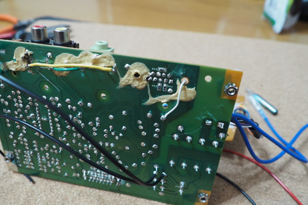 ひとつ思い当たる事が。リアパネルを閉じる際にケーブルがつかえて入りにくいのをグイグイ力で押し込んだ。その際に、キャパシタ出力のランドごと、ケーブルを引き剥がしてしまったのでは?? やれやれ・・・やらかしたか。もう一回開腹ですか。