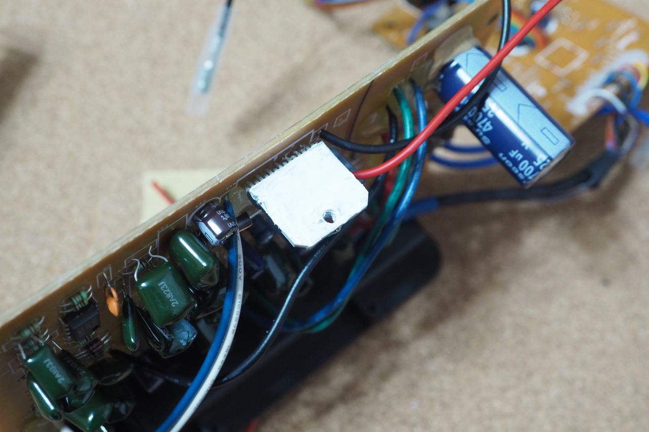 ここまで出来たら、端子カバーとシールド放熱器を被せていくんですが。この端子カバーは穴が空いていないので、今回のカラーケーブルを通せません。そこで、