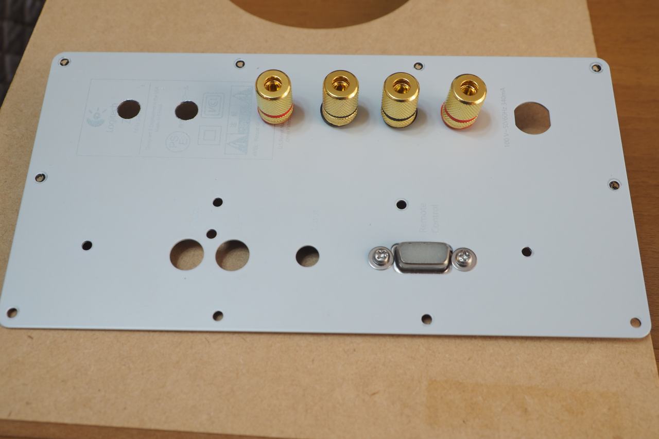 その前に、RS232C端子の穴をどう塞ぐか。これだけ大きな穴を開けっ放しにすると、ウーファーの背圧がここから漏れてしまいます。