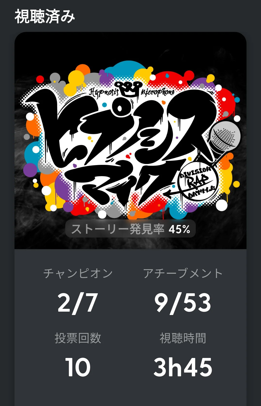 裏を返せば55%のストーリー/曲は未見ということなのです。これ全部コンプするのは結構たいへんだわ。