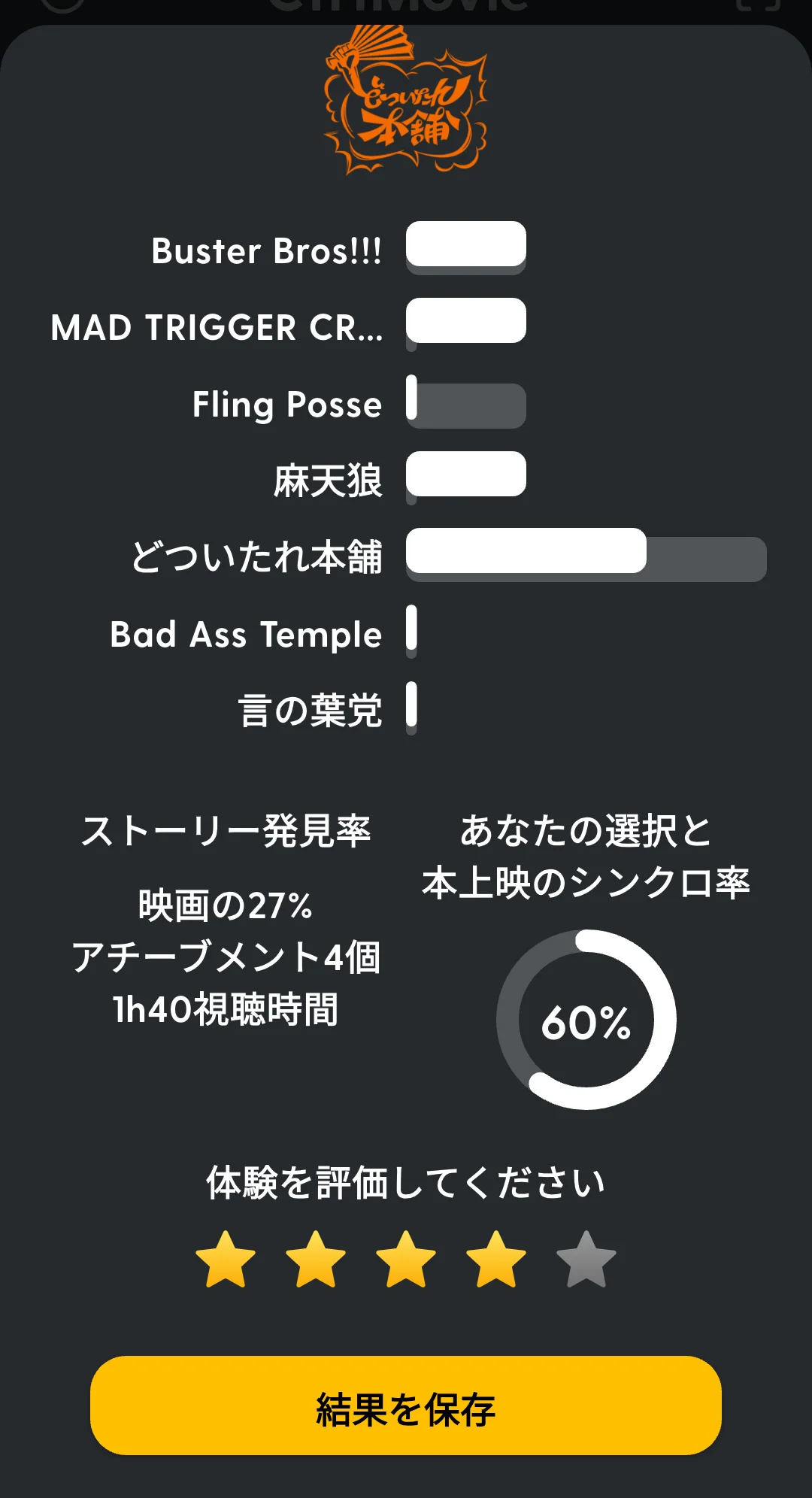 今回の試聴によって、ストーリー発見率は45%まで達成!